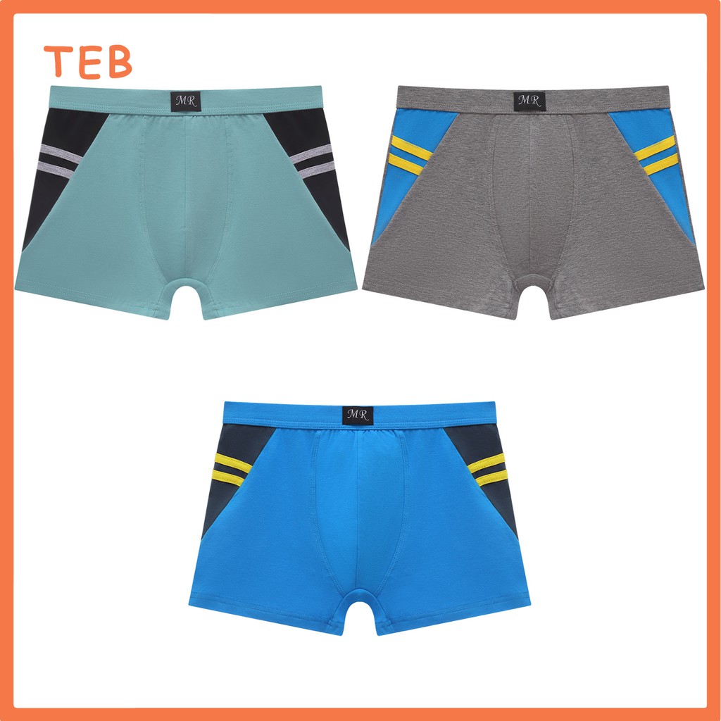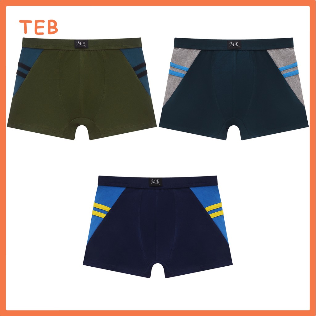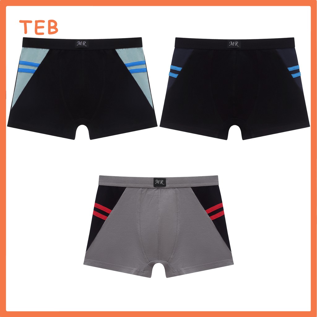 (3PCS | M-2XL) MR Sporty Double Stripes Cotton Boxer Underwear | Seluar Dalam Boxer Lelaki Rekaan Jalur Berganda
