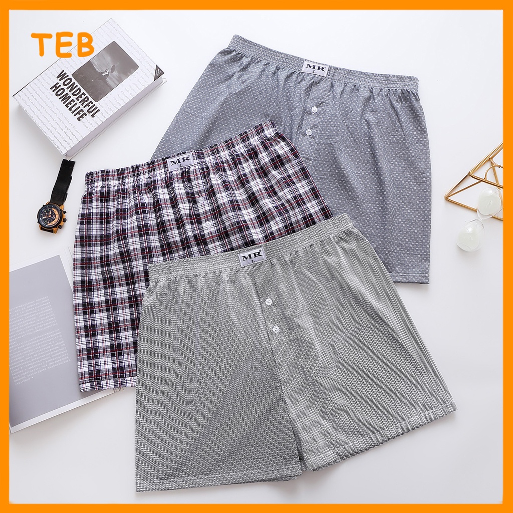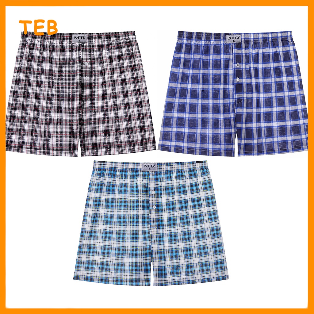(3PCS | M-4XL) MR Comfort Men’s Boxer Shorts Breathable Polyester Loose Fit | Seluar Dalam Lelaki Butang Depan Longgar