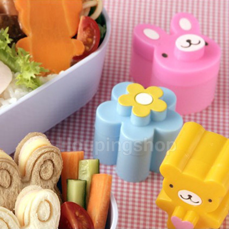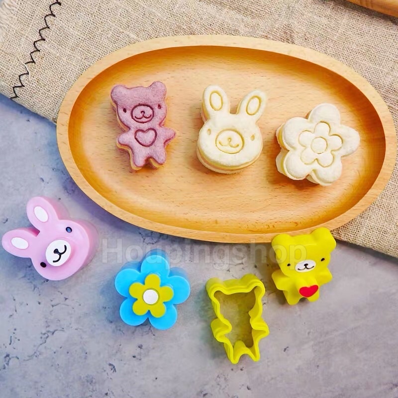 3pcs Sandwich Crust Cutter Cookie Bread Mold Kids Rice Balls Bento Maker Rabbit Panda Flower Lunch Mould DIY Baking Tool