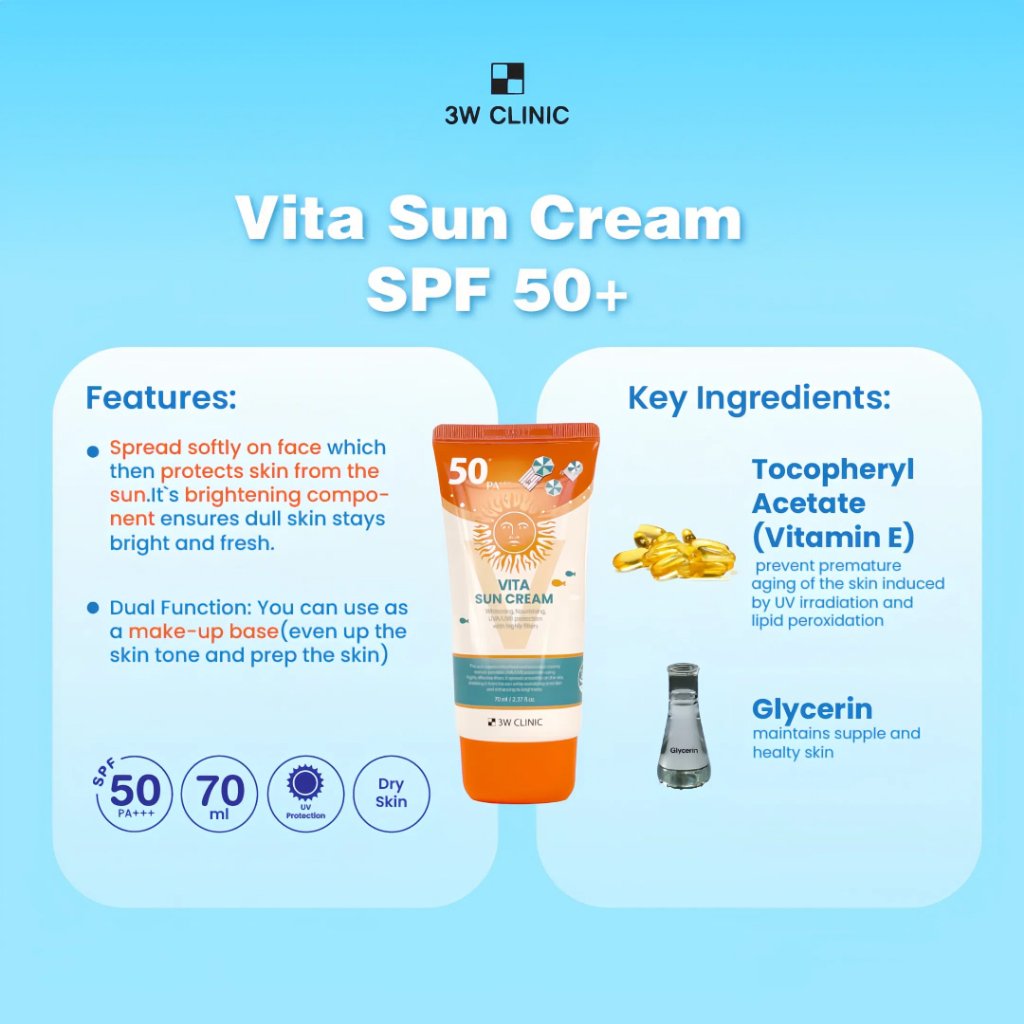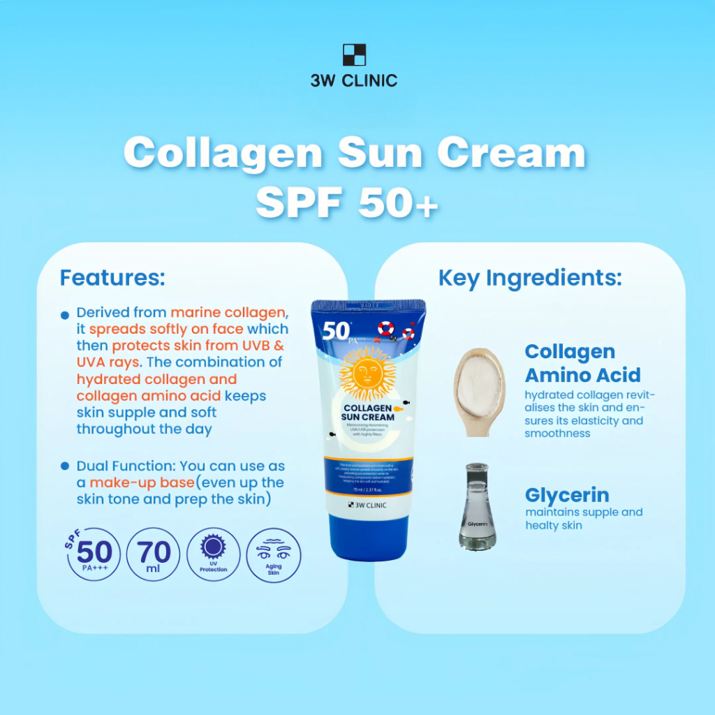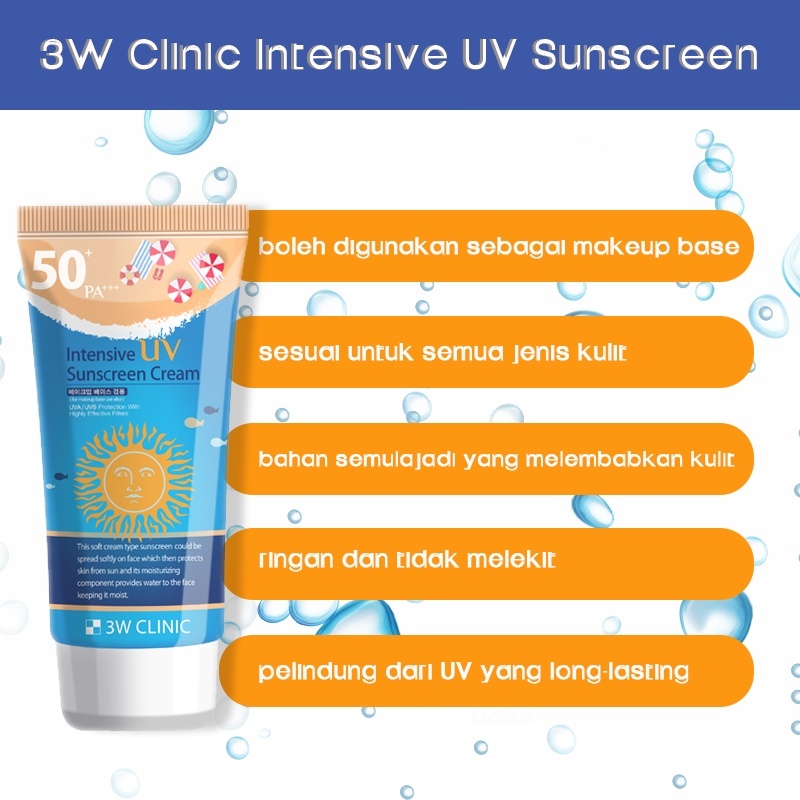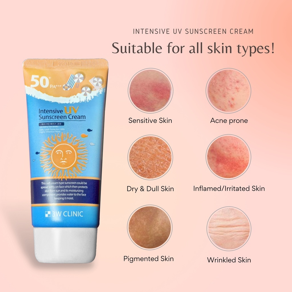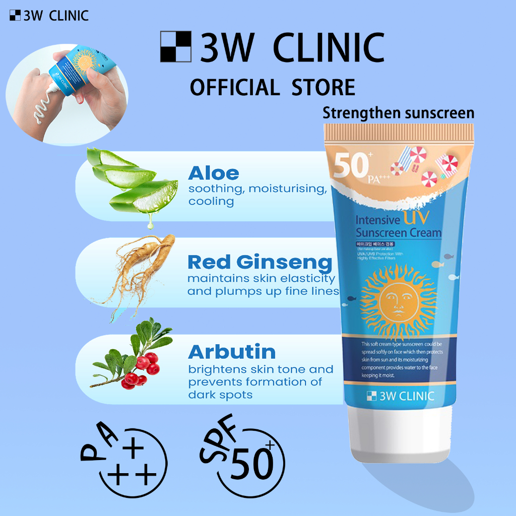 3W CLINIC Sunscreen Intensive UV Sunscreen Cream Moisturizing For Sensitive Skin PA+++ SPF50+ 70ml Sun UV Protection