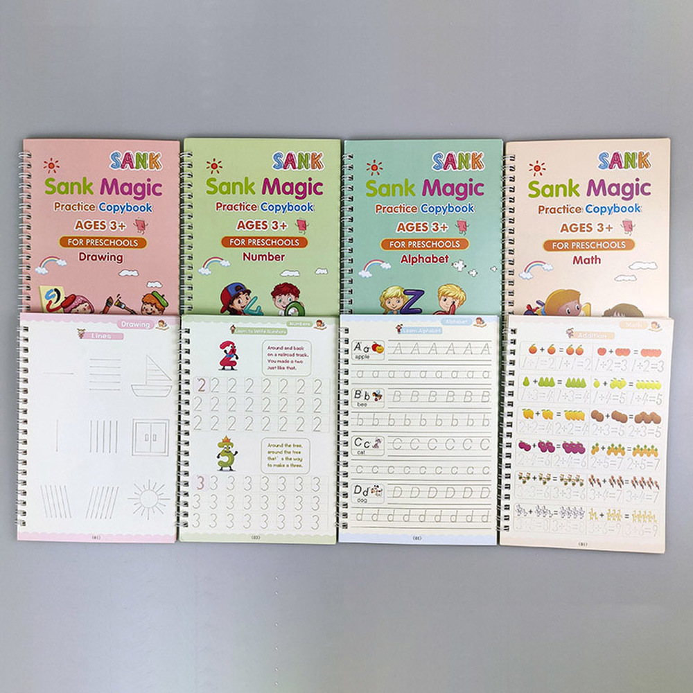 4 Book/Set )SANK Magic Writing Magic Calligraphy Handwriting Copybook Set Writing Board Tracing Book for Kids