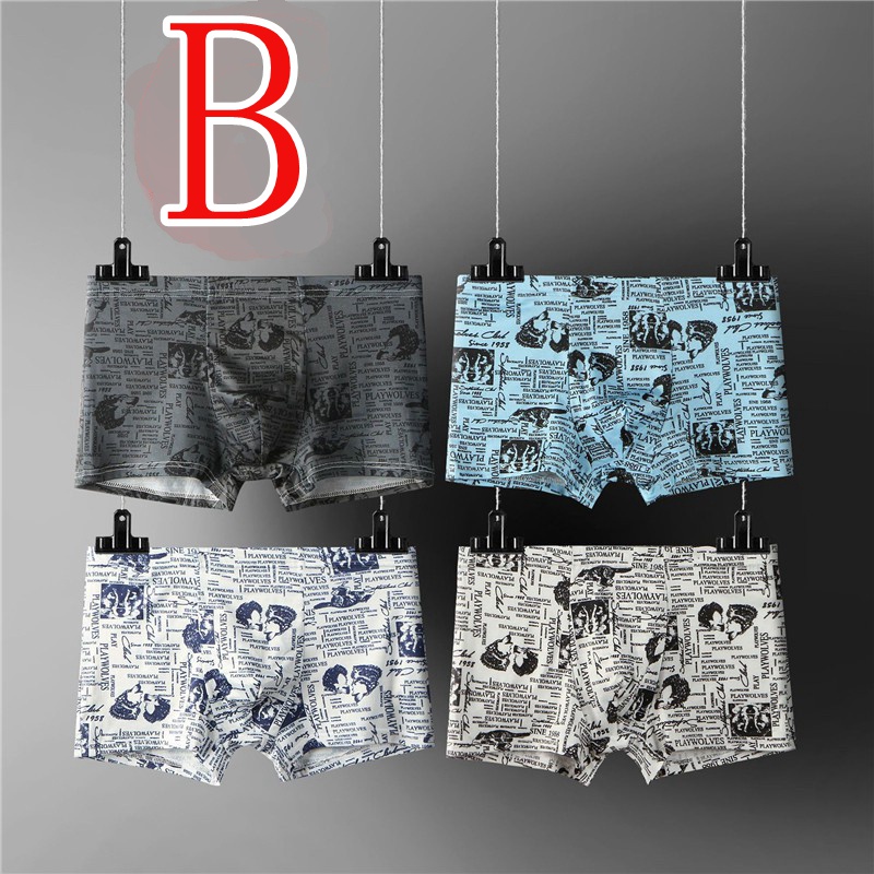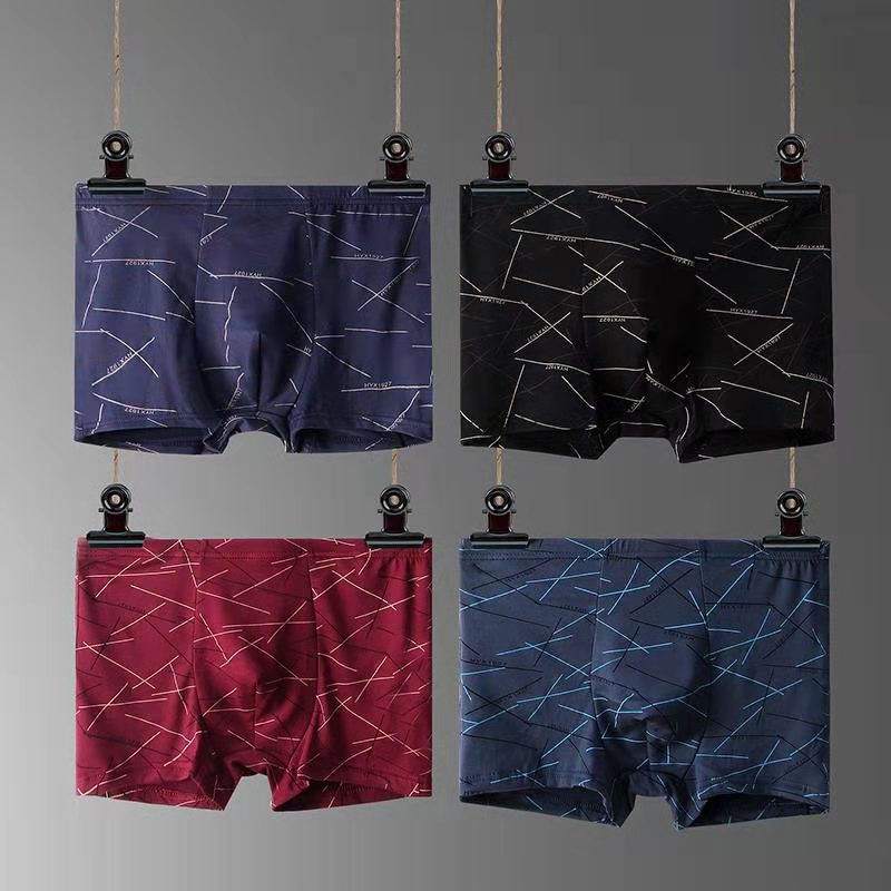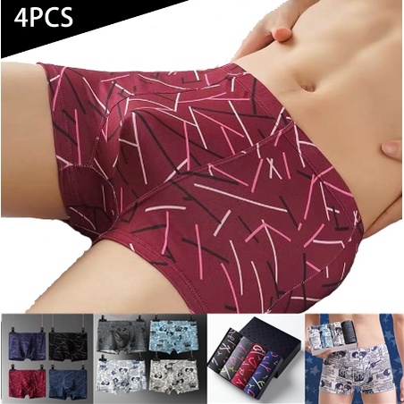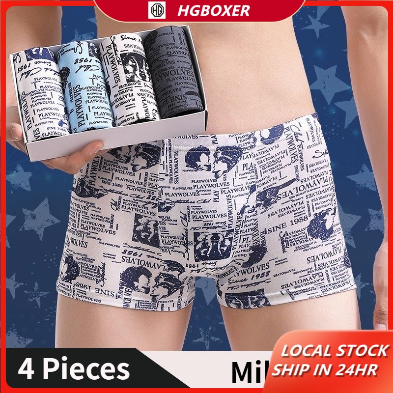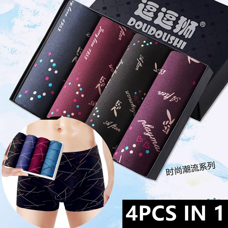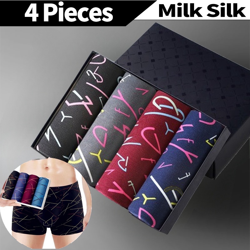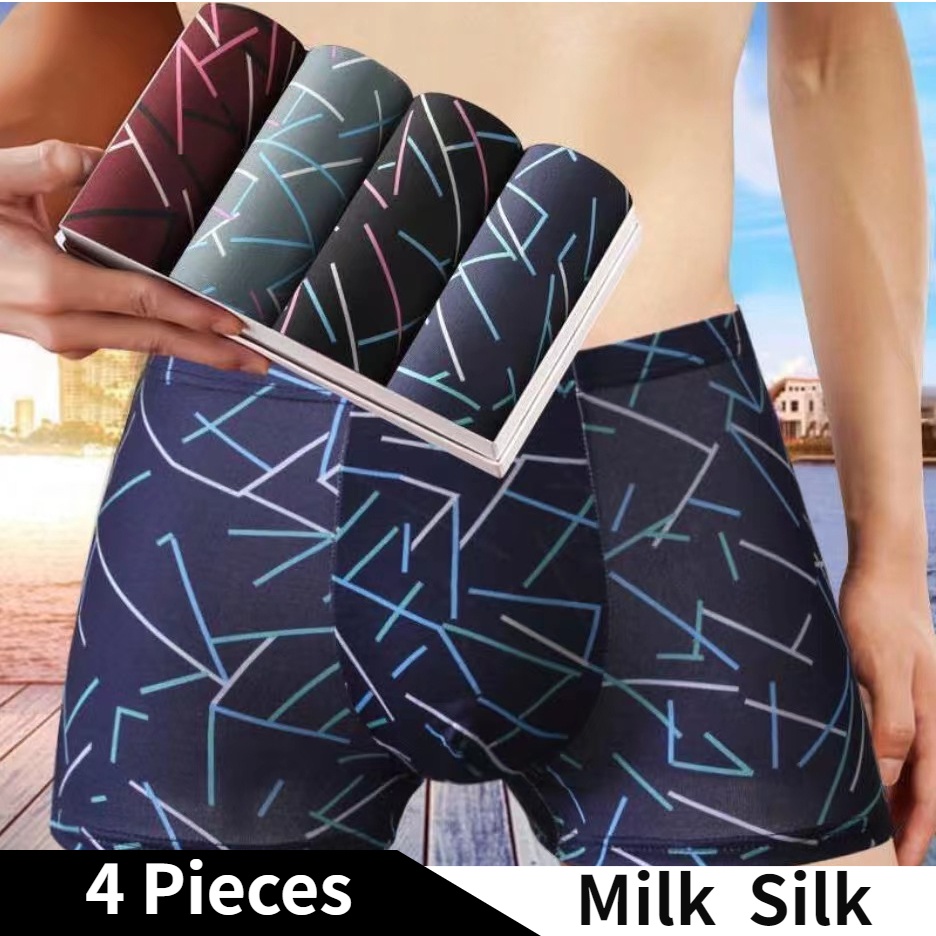 【4 PCS In 1】Men Silk Boxer Breathable Underwear Seluar Dalam Lelaki