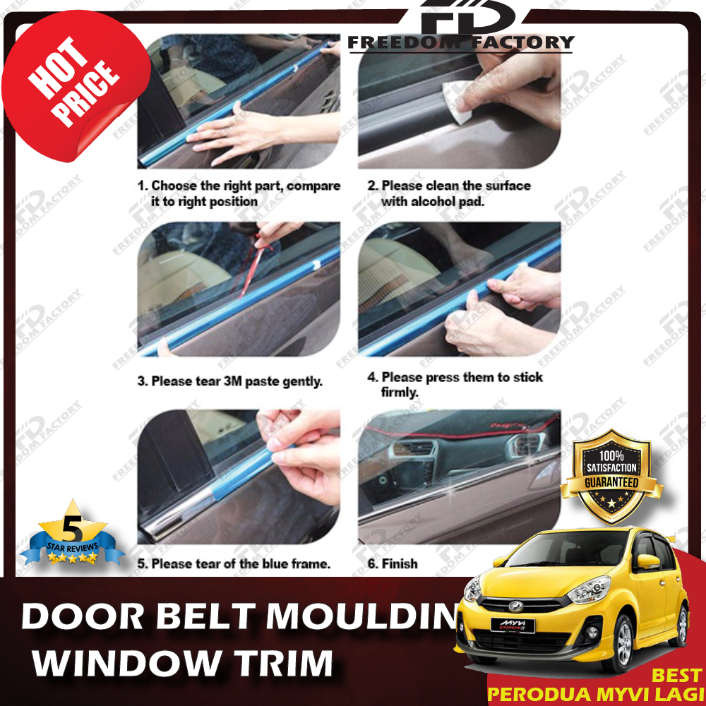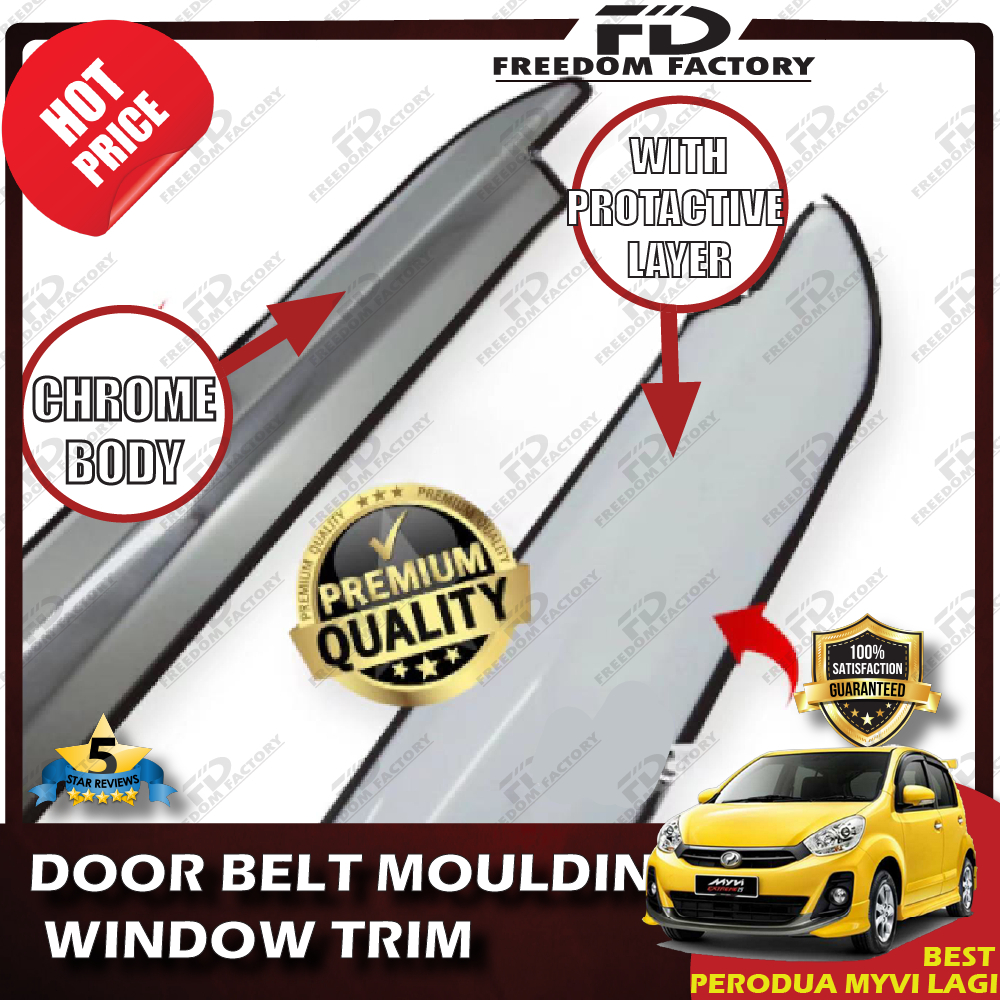 (4 PCS/Set)PERODUA MYVI LAGI BEST CHROME Door Belt Moulding / Window Trim Lining/ Chrome Tepi Cermin