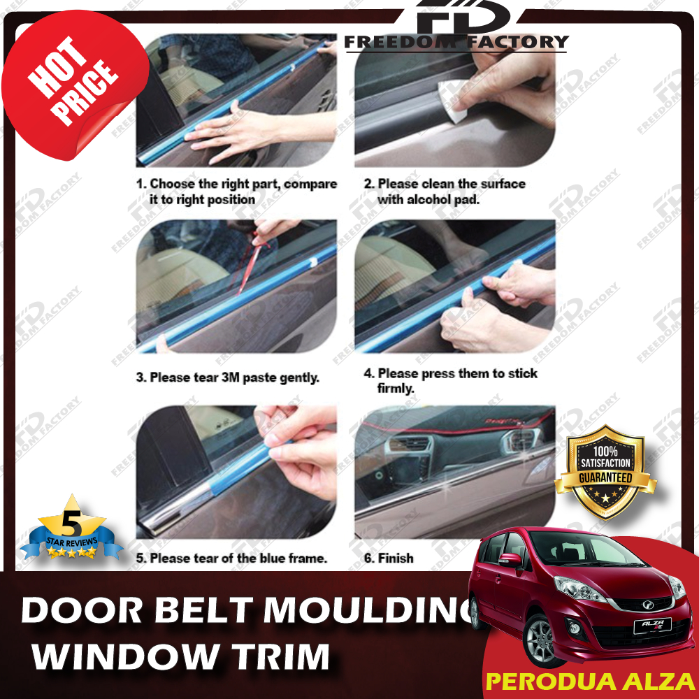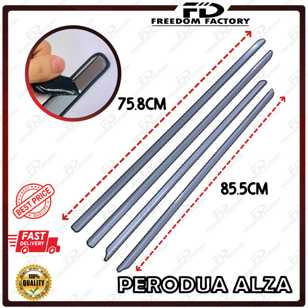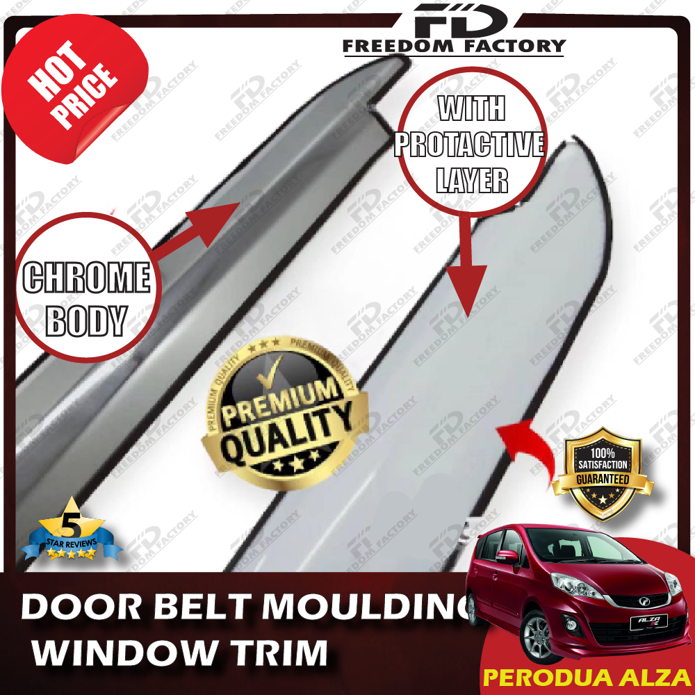 (4 Pieces/Set)PERODUA ALZA CHROME Door Belt Moulding / Window Trim Lining / Chrome Tepi Cermin Pintu