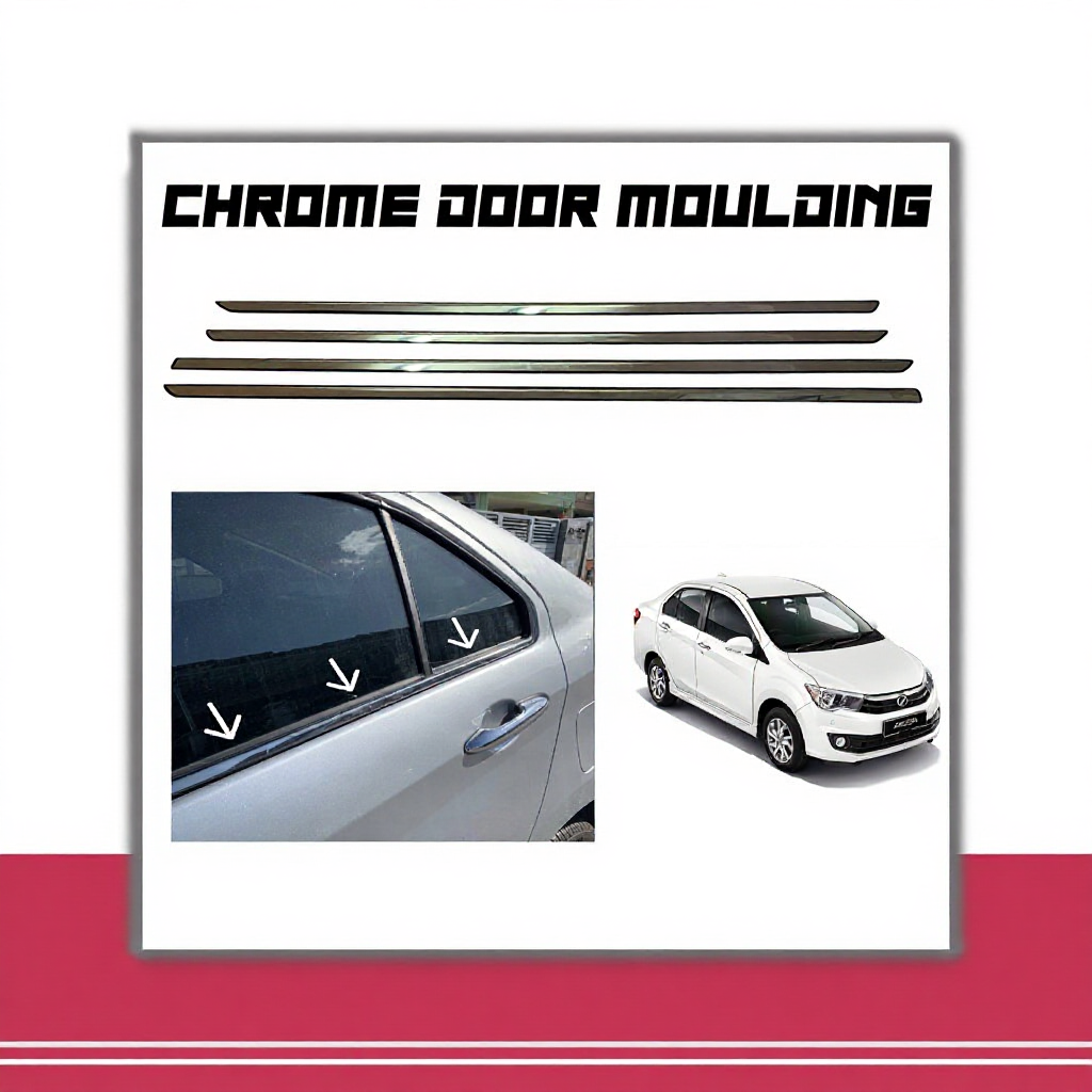 (4 Pieces/Set)PERODUA BEZZA CHROME Door Belt Moulding / Window Trim Lining/Chrome Tepi Cermin Pintu