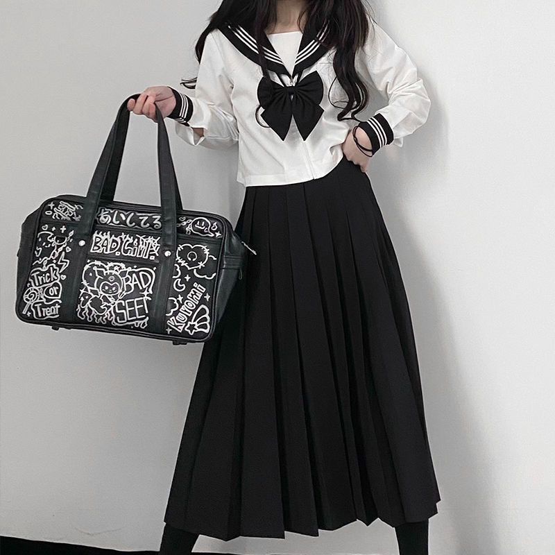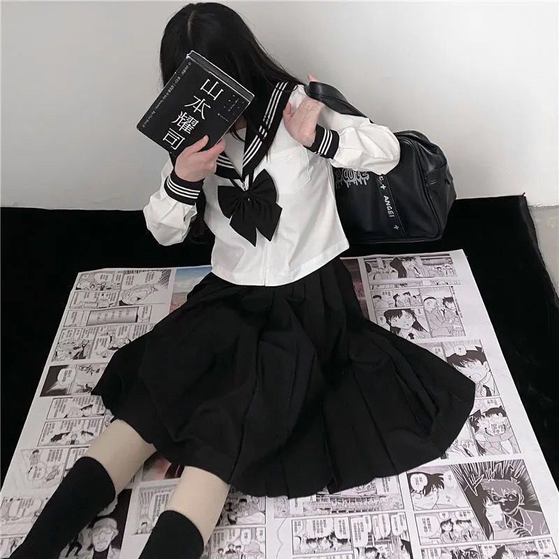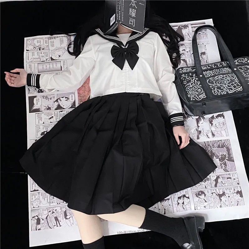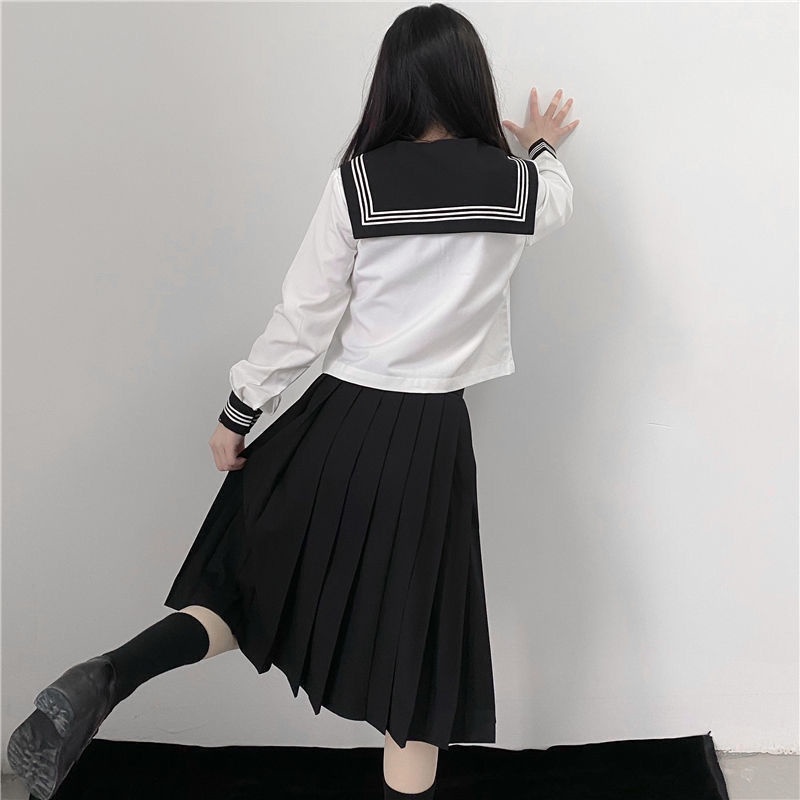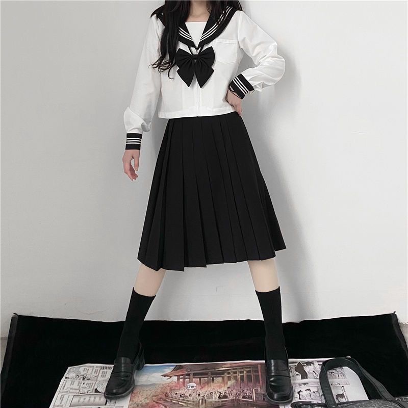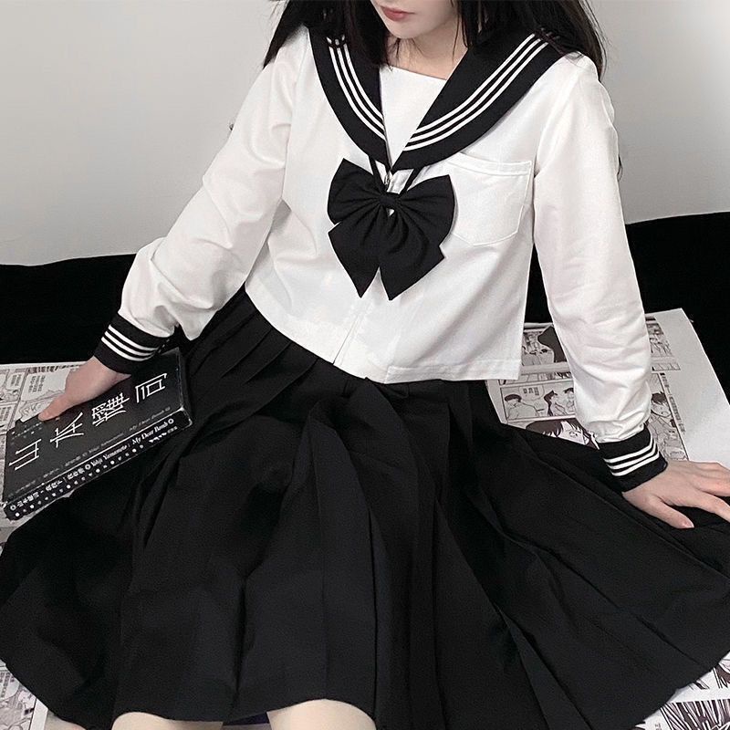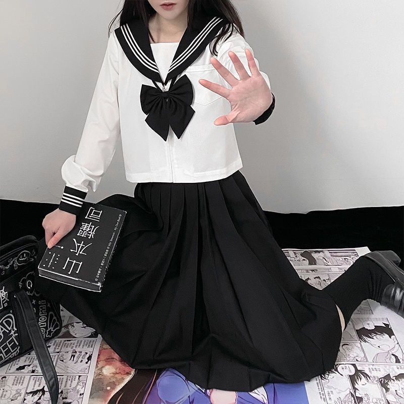 [40-100kg M-4xL]胖MM大码原创jk基础款黑领白三本jk制服日系不良长裙水手服中间服Fat pulssize oversize Individual Sets