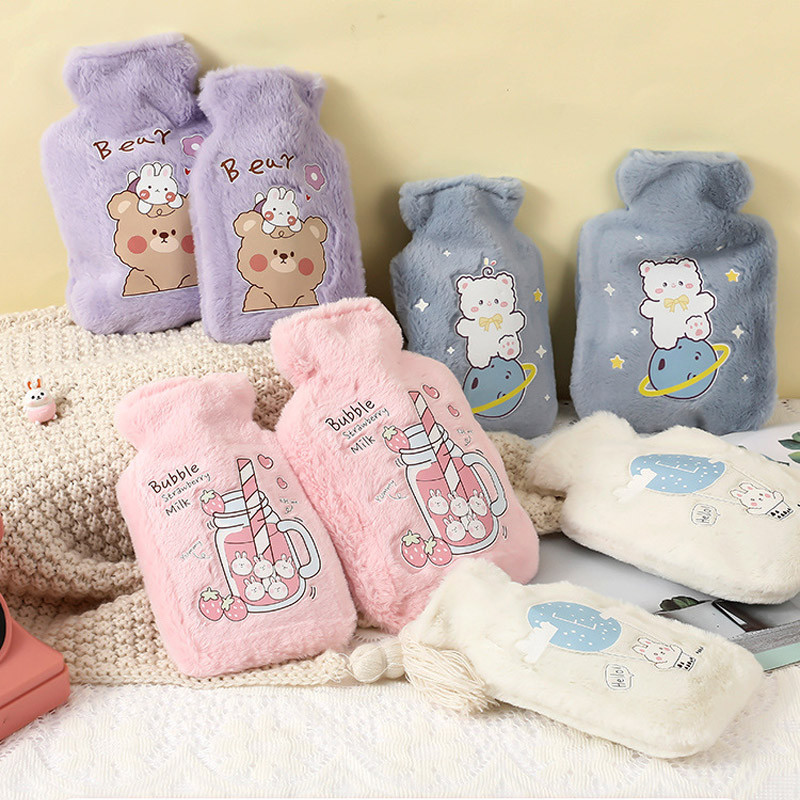 400ML-1000ML Hot Water Bag Portable Plush Warmer Bag for Period Pain Relieve Keep Warm Bag