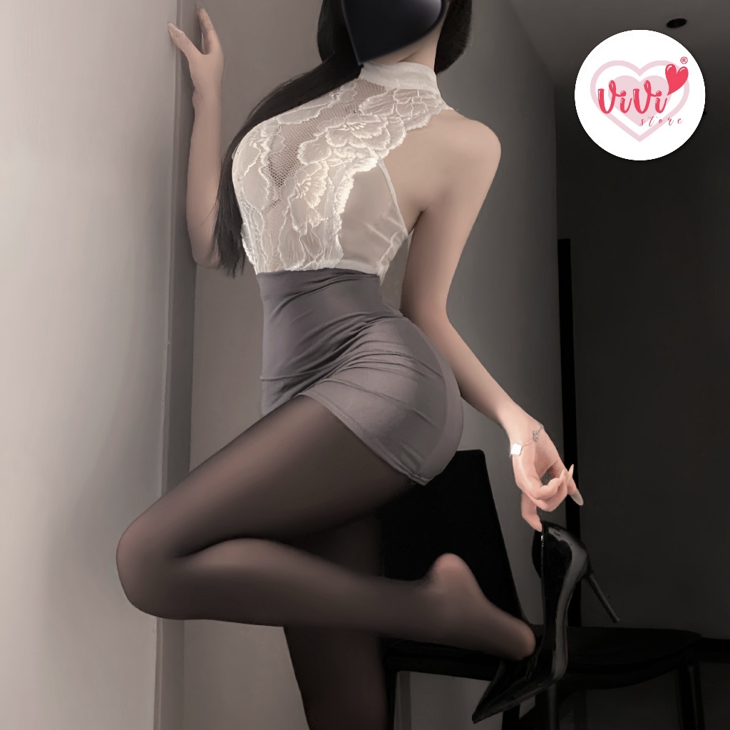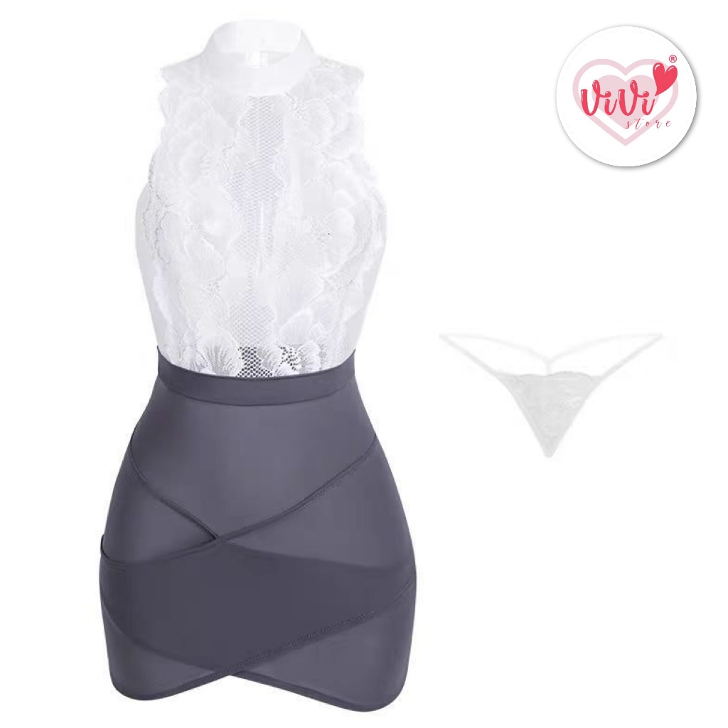 (40kg -60kg) Vivi Sexy Lingerie Cosplay Costume Secretary Lace Dress Baju Tidur Seksi Wanita 性感制服裙