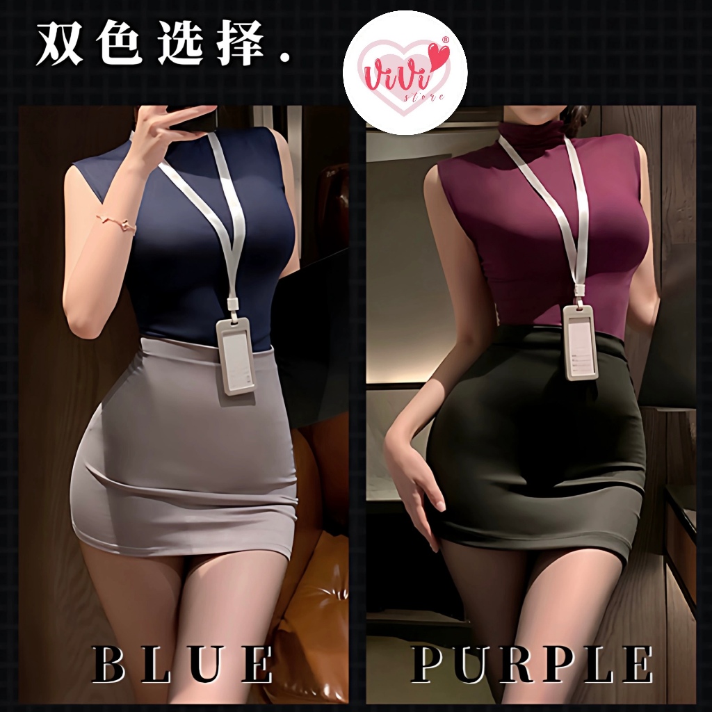 (40kg –75kg) Vivi Sexy Plus Size Secretary Cosplay Costume Set Baju Seksi Wanita 性感大码包臀秘书制服套装