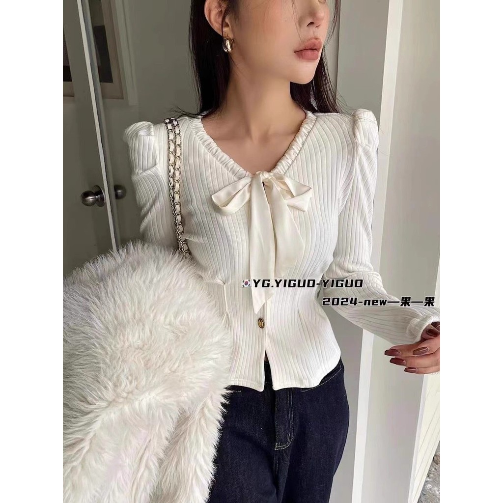 469 HYK SHOP?? Elegant White Blouse with Bow Tie Women | Baju Blouse Putih Wanita Kasual Officewear