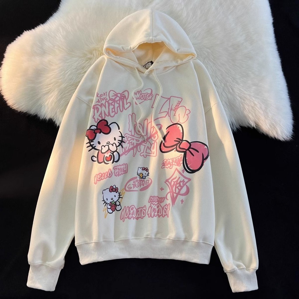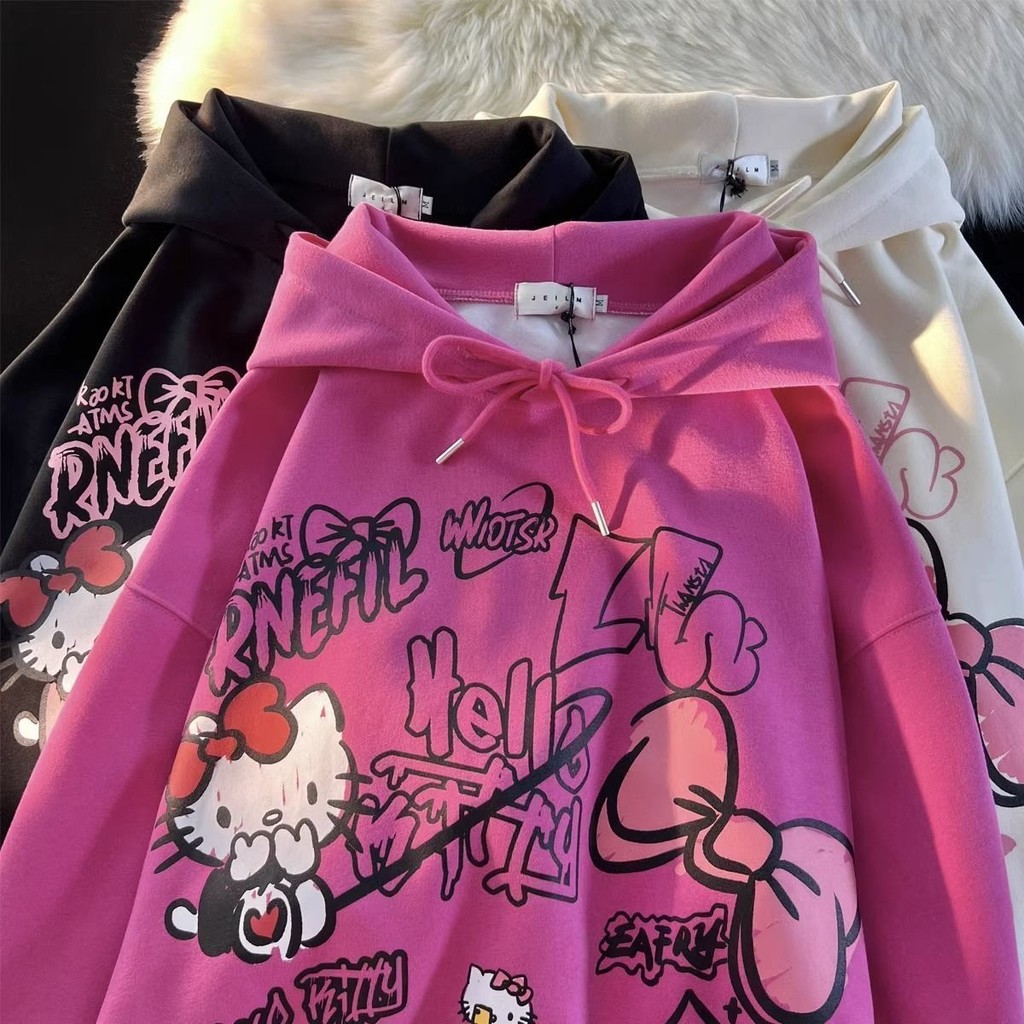 【48小时内发货】 100%不起球凯蒂猫印花连帽卫衣女春秋季新款oversize宽松潮外套
