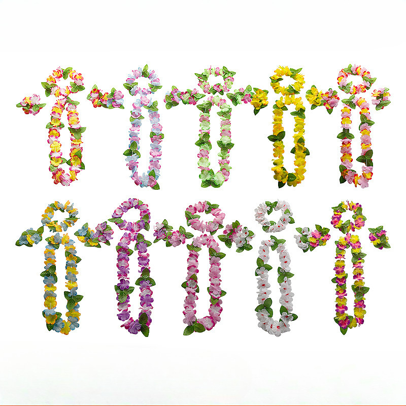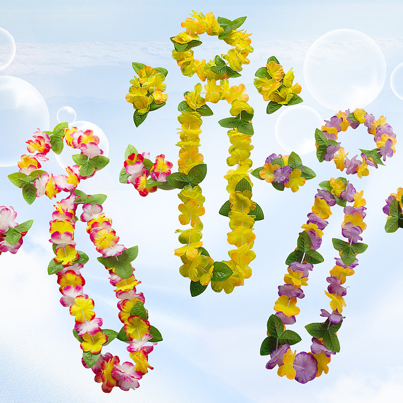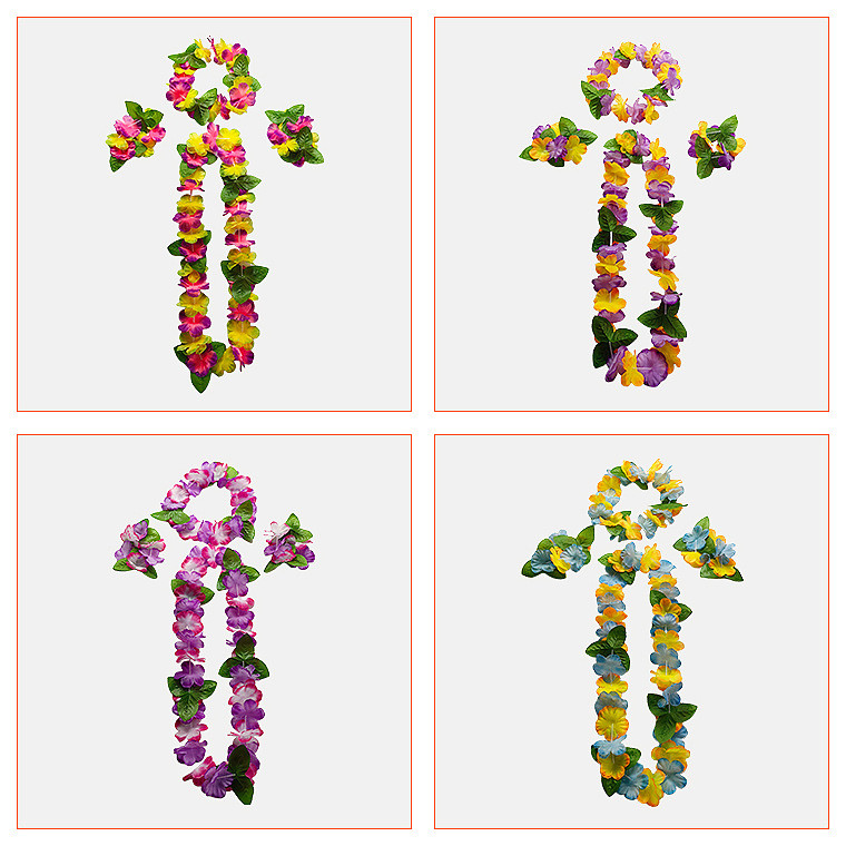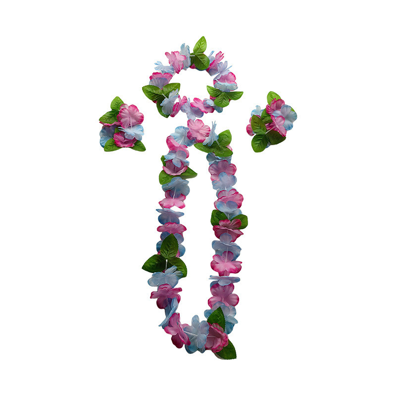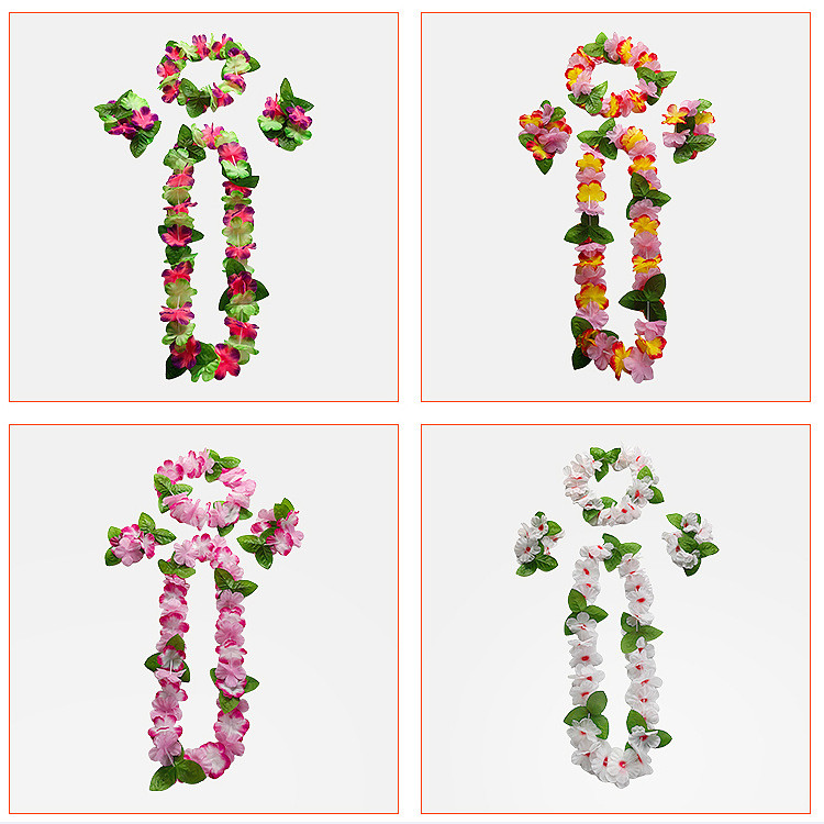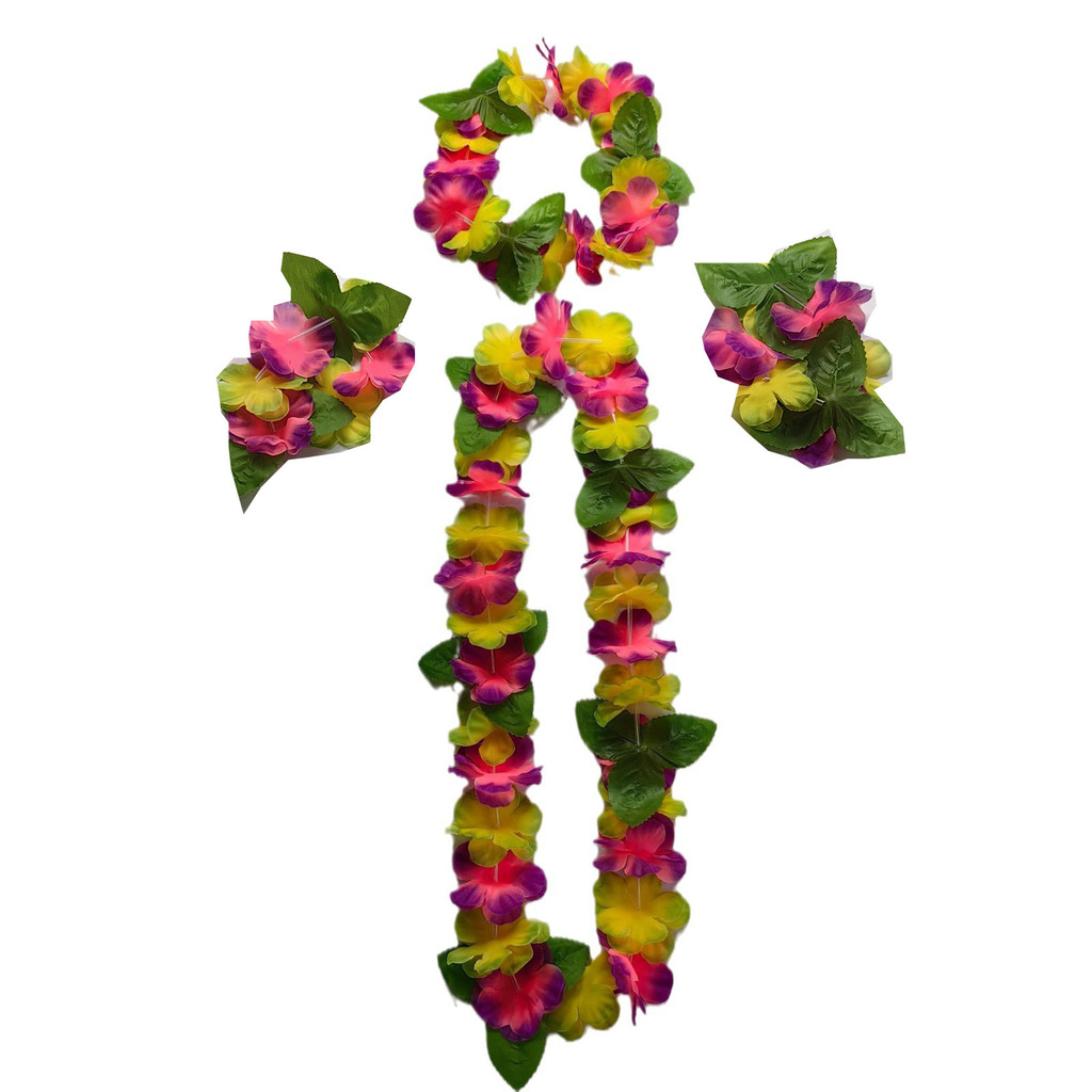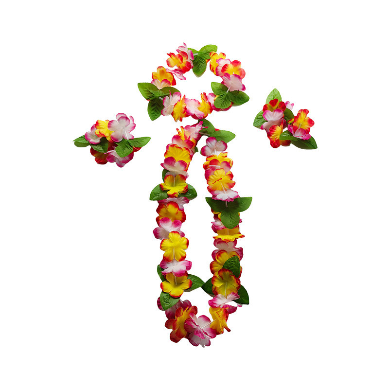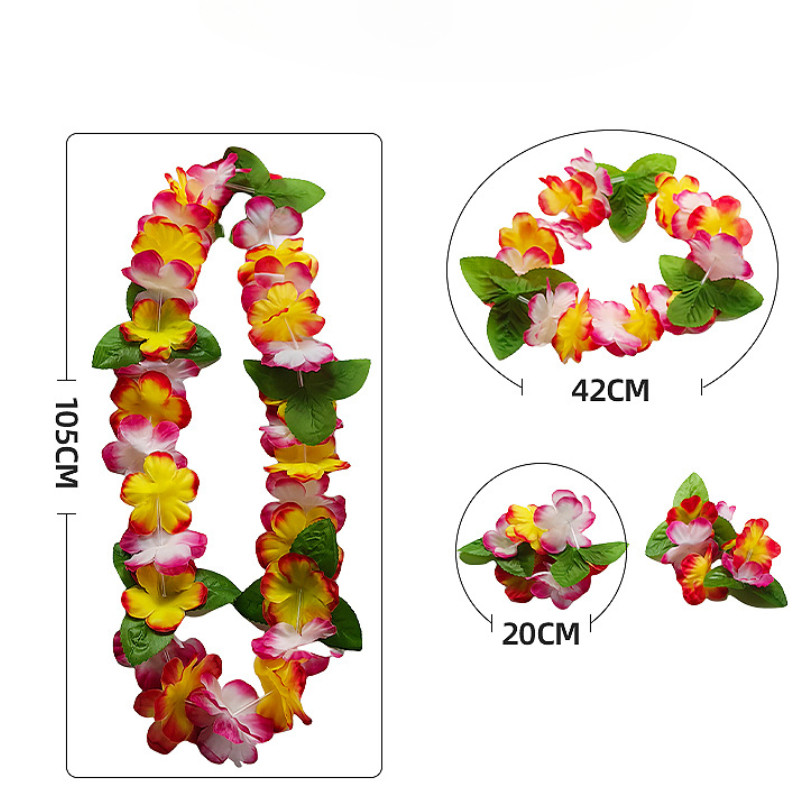 4pcs Set Hawaiian Garland Sets Flowers Wreath Necklace with Bracelets Wrist Flower Headband Garland Hawaiian Them Party Decorations Beach Accessories for Women Girls Photoshoot