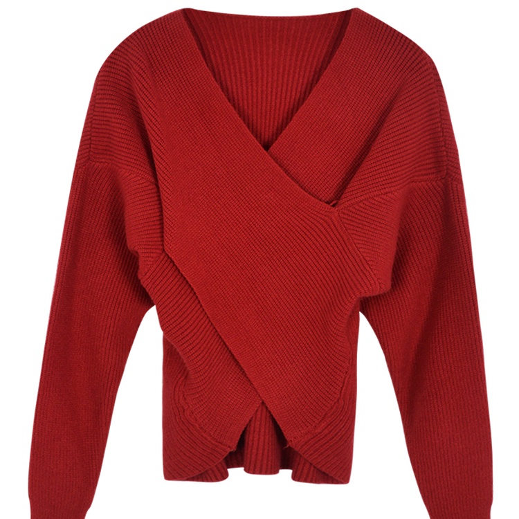 【5 Color】Retro Versatile Long Sleeve Knit Spring Autumn Thin Fashion Irregular V-Neck Temperament Top