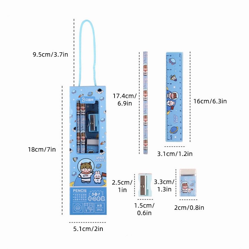 5 in 1 Pencil Study Set Student Gift Portable Stationery Set Gift Box Birthday Present Gift Pencil