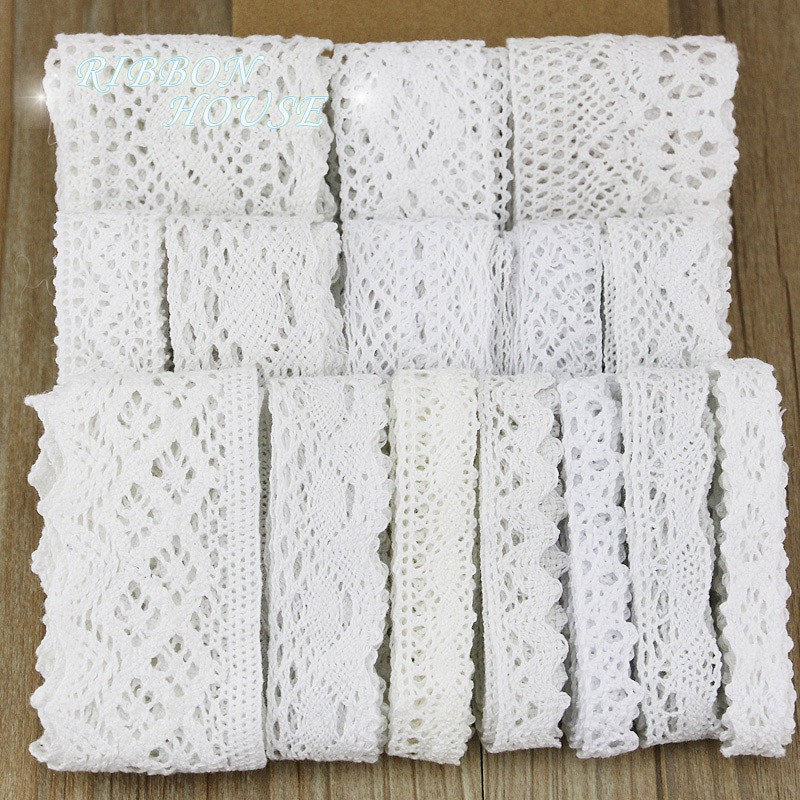 (5 meters/roll) White Cotton Embroidered Lace Net Fabric Trim DIY Sewing Handmade Craft Ribbon Materials