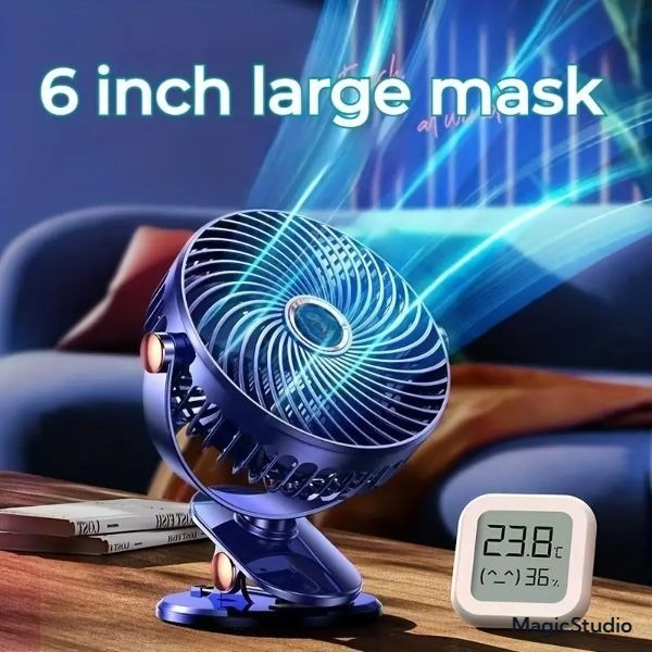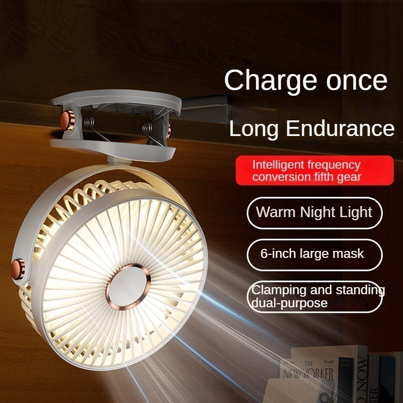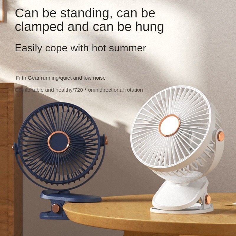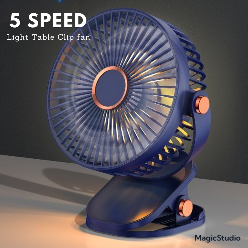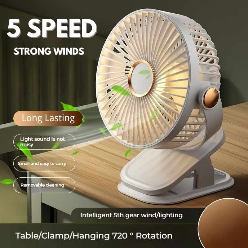 【5 Speed】1800mAh Long Lasting Clip Fan USB Charging Desktop Office Student Light Table Clip Wall Hanging 360 Rotation