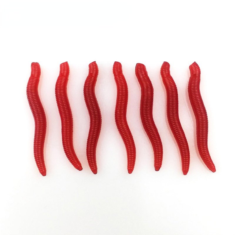50 Pieces Lifelike Fishy Smell Red Worms Soft Bait Simulation Earthworm Carp Bass Fishing Lures Artificial Silicone