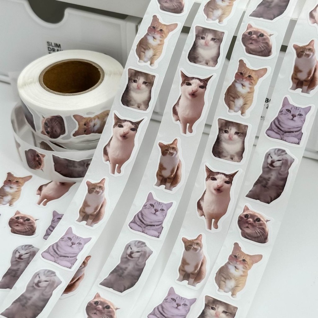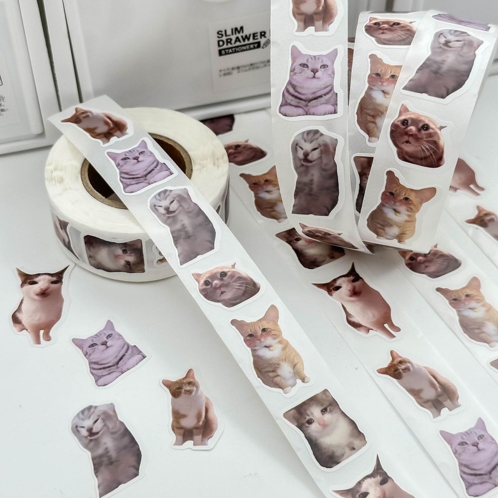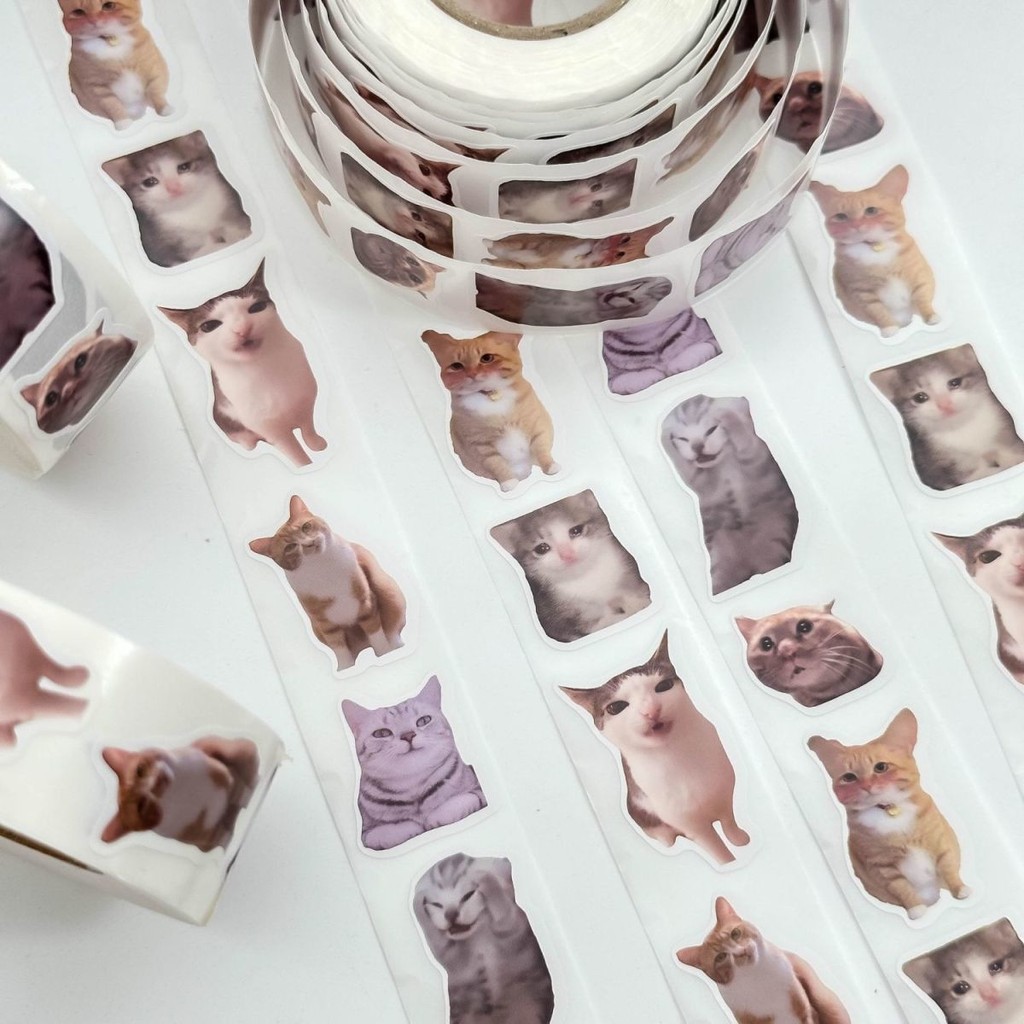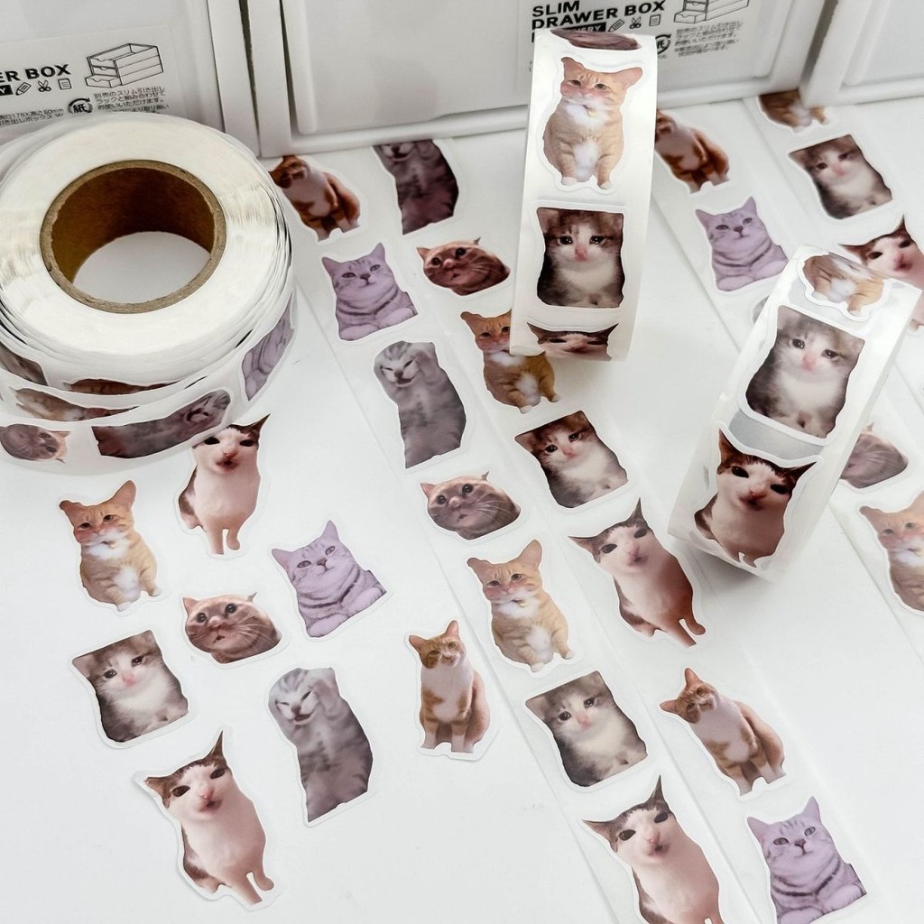 [500 Stickers] meme Cat Cat Roll Stickers Emoticon Sealing Tape Stickers Cute Fun diy Decoration Handbook Stickers