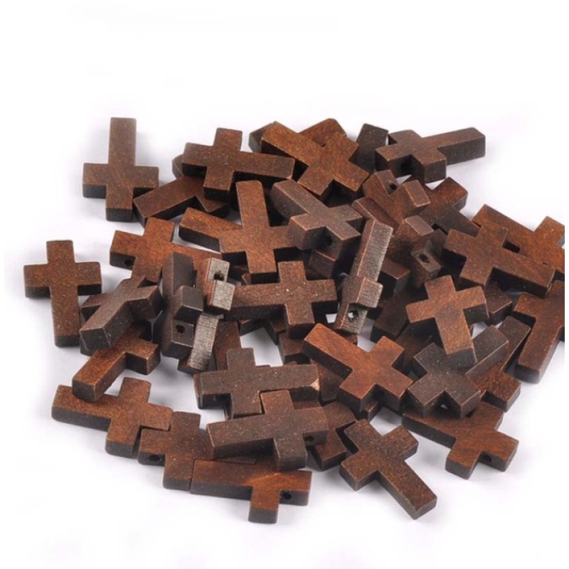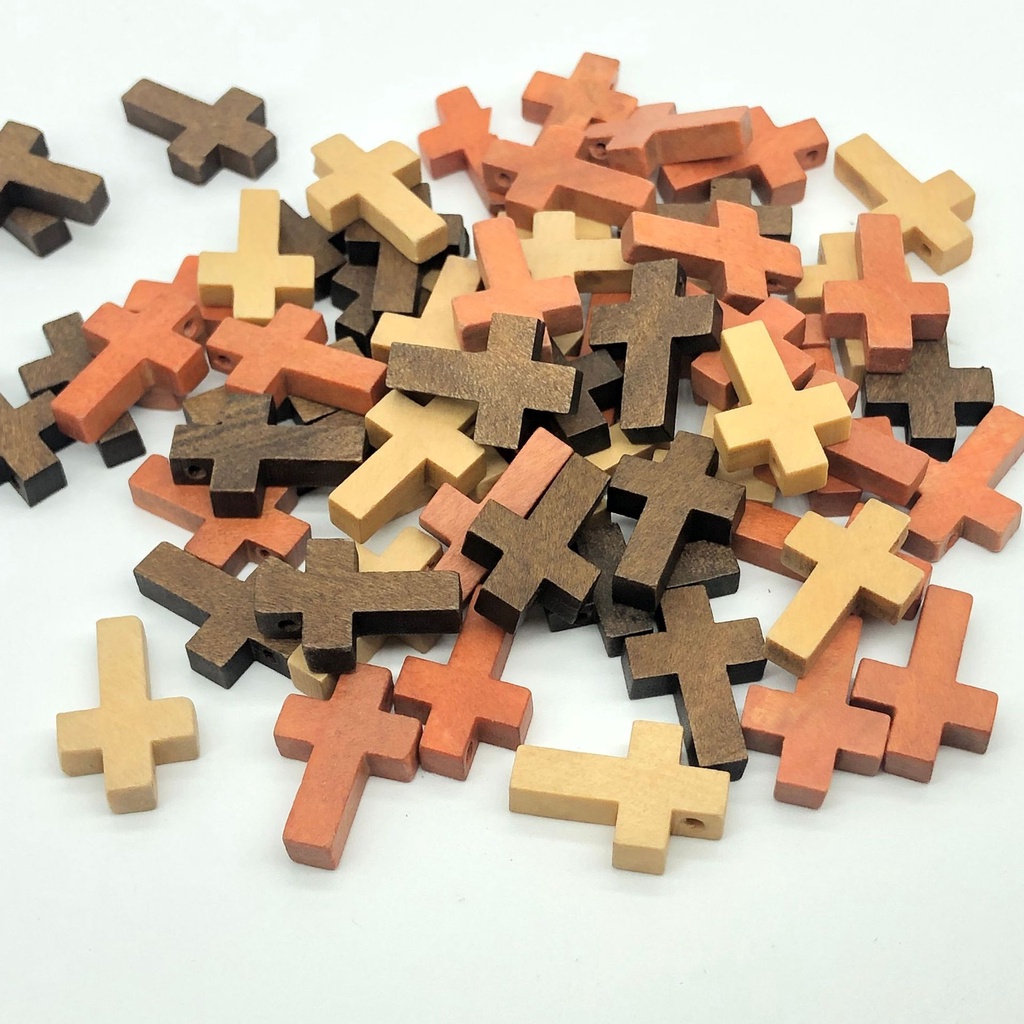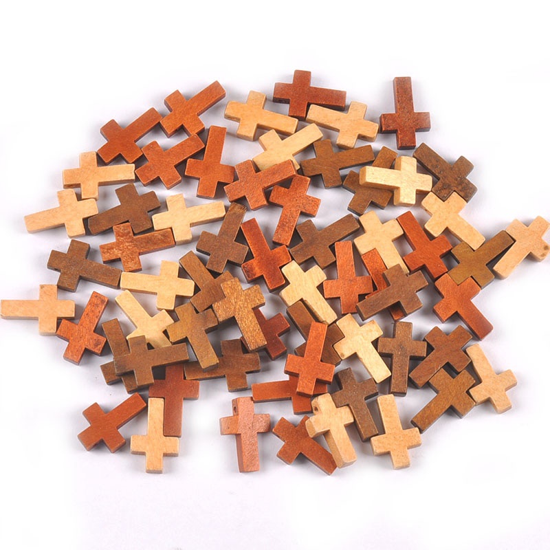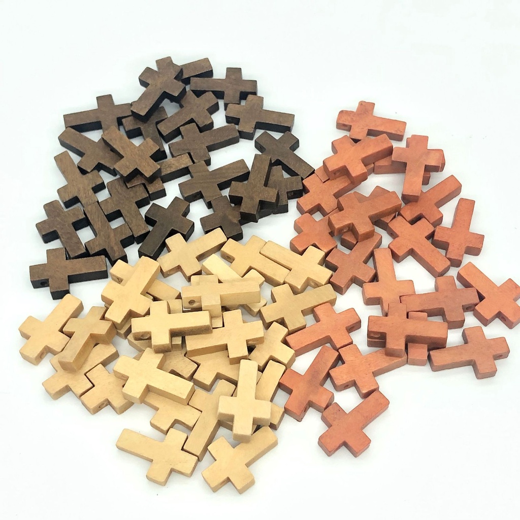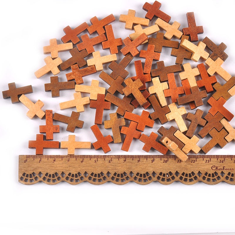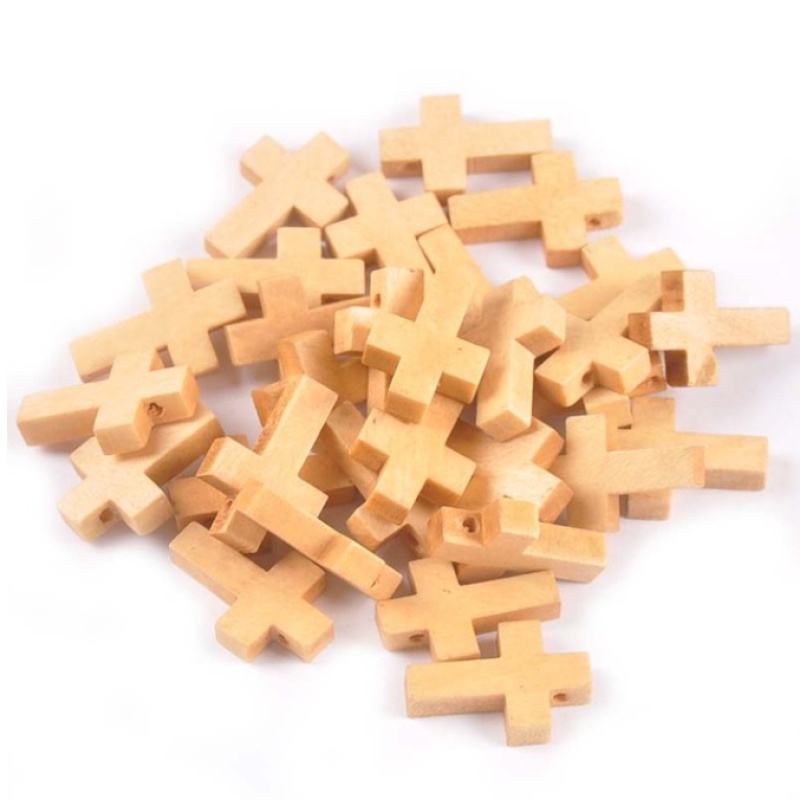 50pcs Cross Beads Wooden Decorations Ornaments Hanging Pendant Jewelry Kids Gifts Unfinished Wood DIY