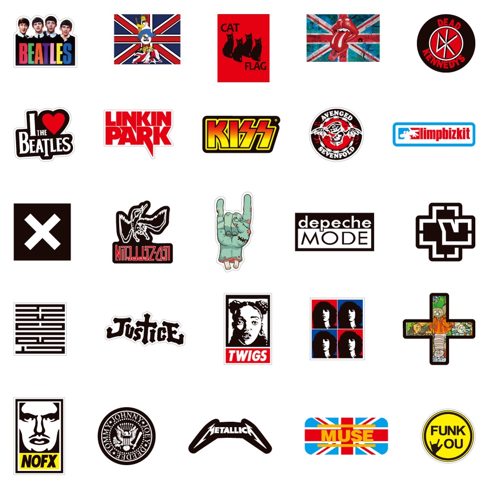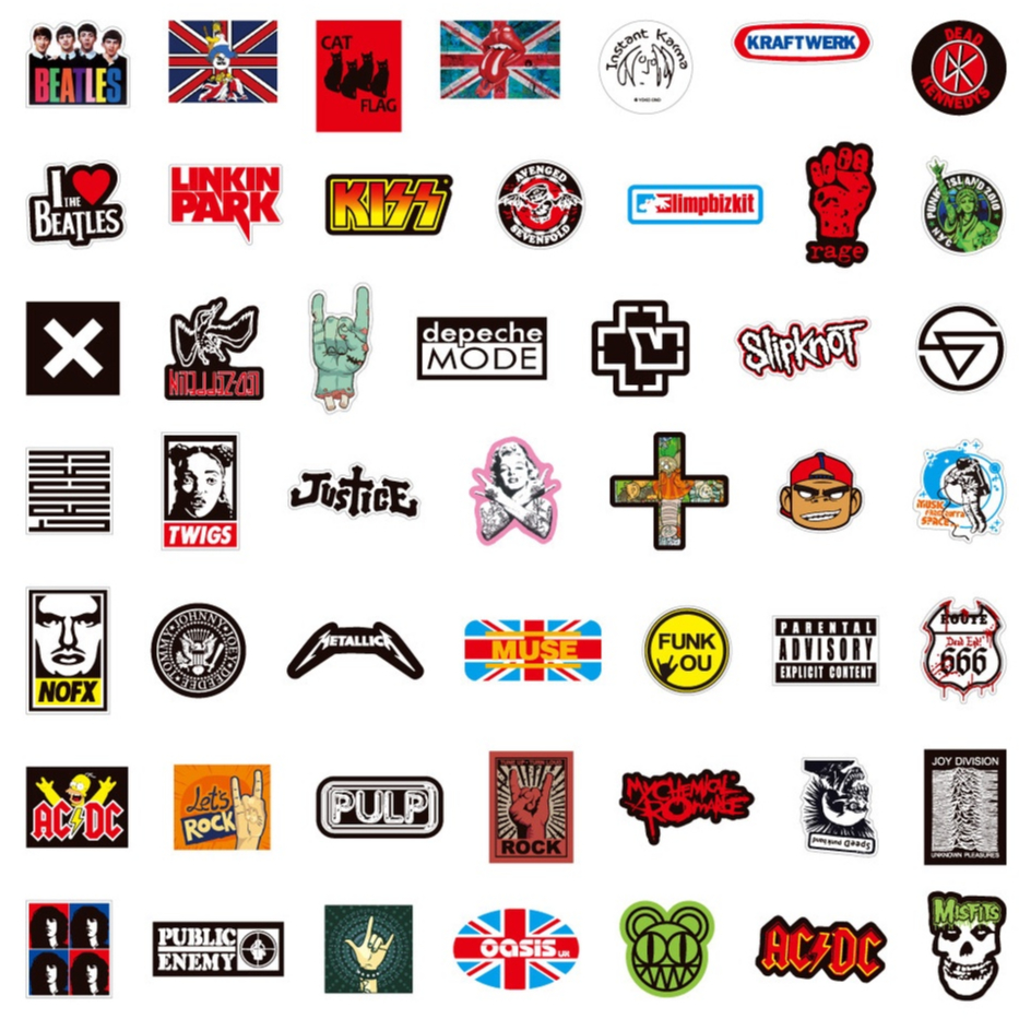 50PCS Punk Rock Band Stickers - Music Themed Decals for Laptop, Guitar, Helmet & Phone