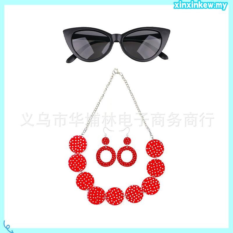 50s Women Set Polka Dot Headband Necklace for Women 5pcs Retro Disco Outfit Women Party Outfits for Women Girls jiwmy