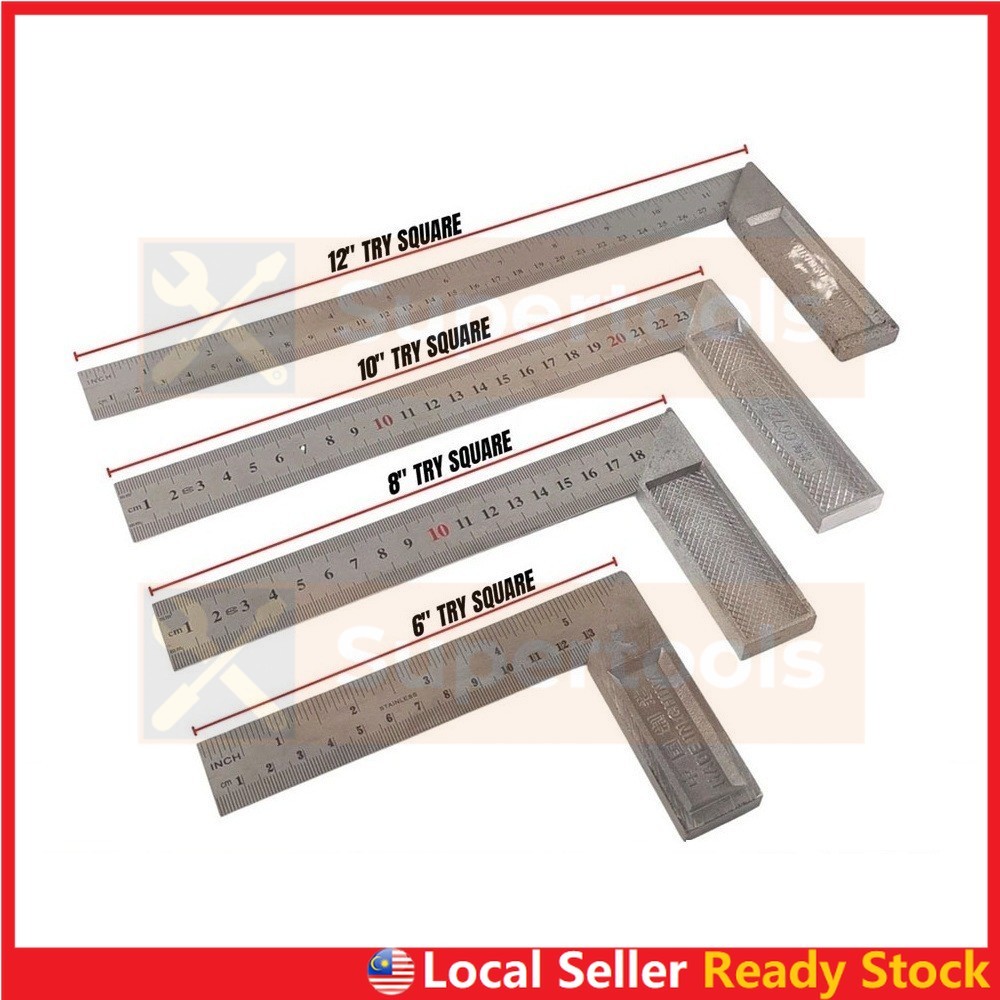 6"/8"/10"/12'' Try Square L Shape Right Angle Ruler Steel Carpenter Square Scale Tools Pembaris Besi L Sesiku