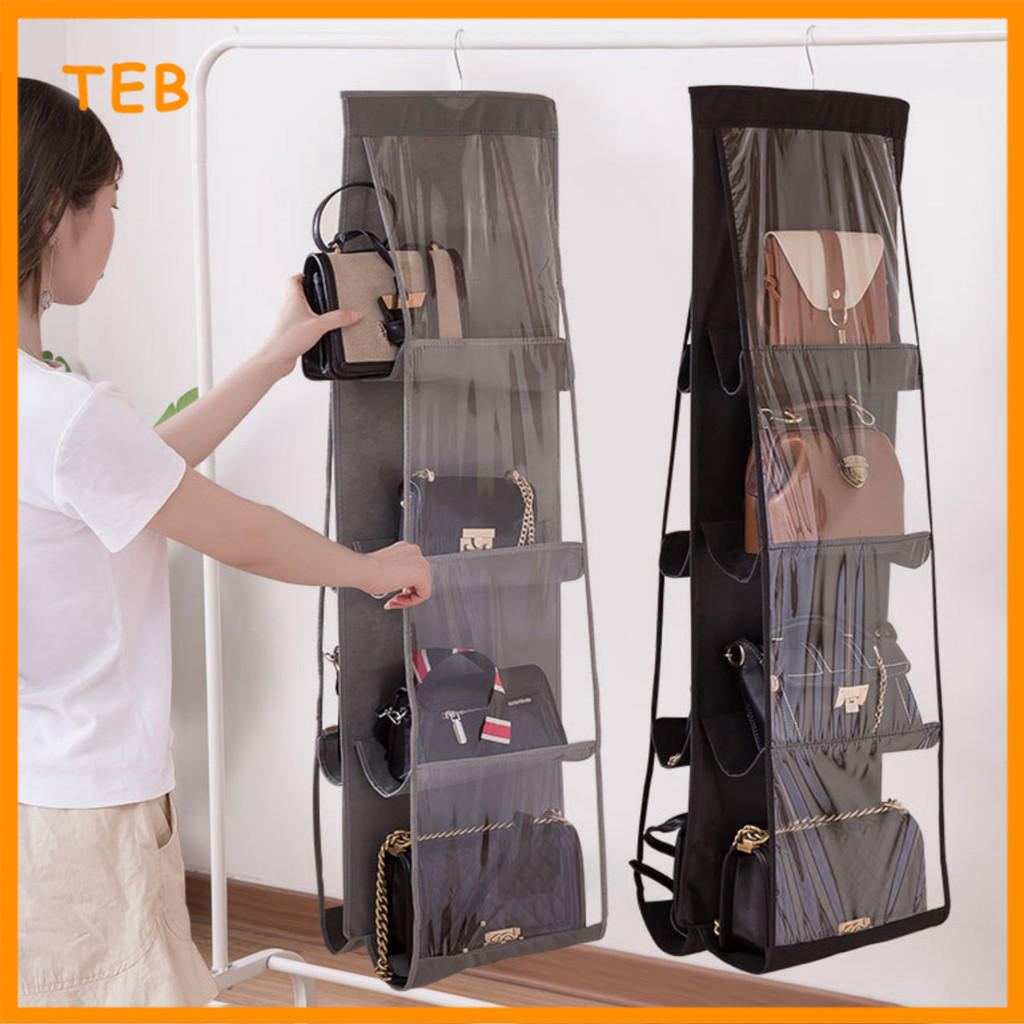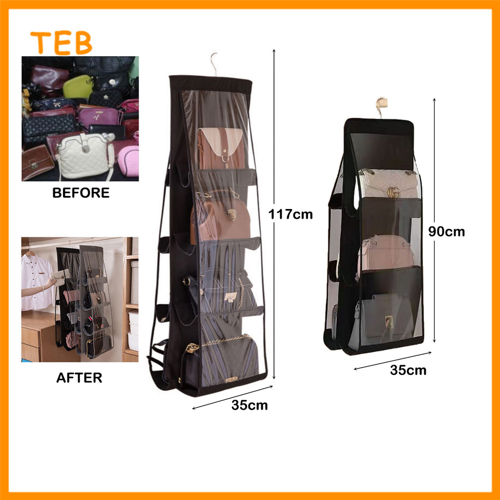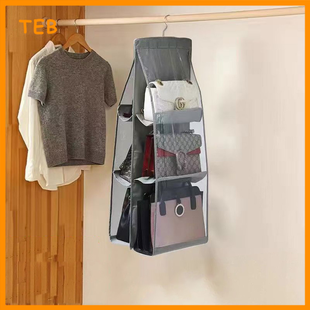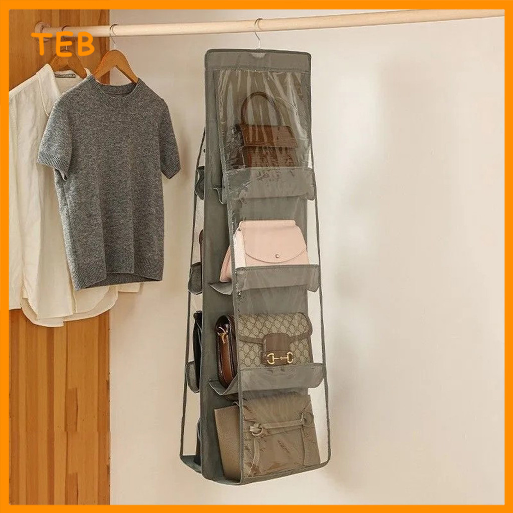6/8 Poket Penyusun Beg Gantungan untuk Almari Kalis Habuk | 6/8 Pocket Hanging Handbag Organizer for Wardrobe Dustproof