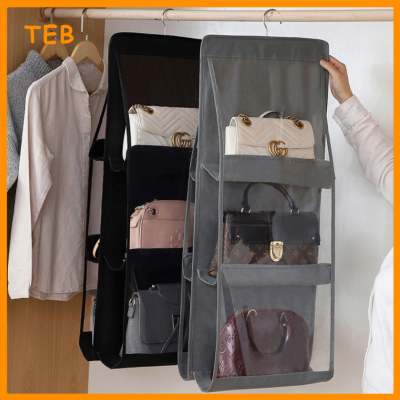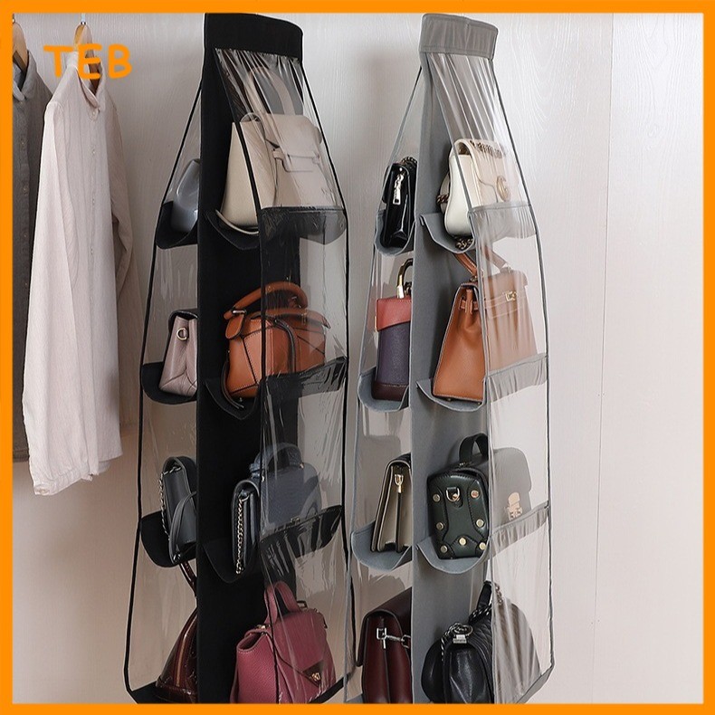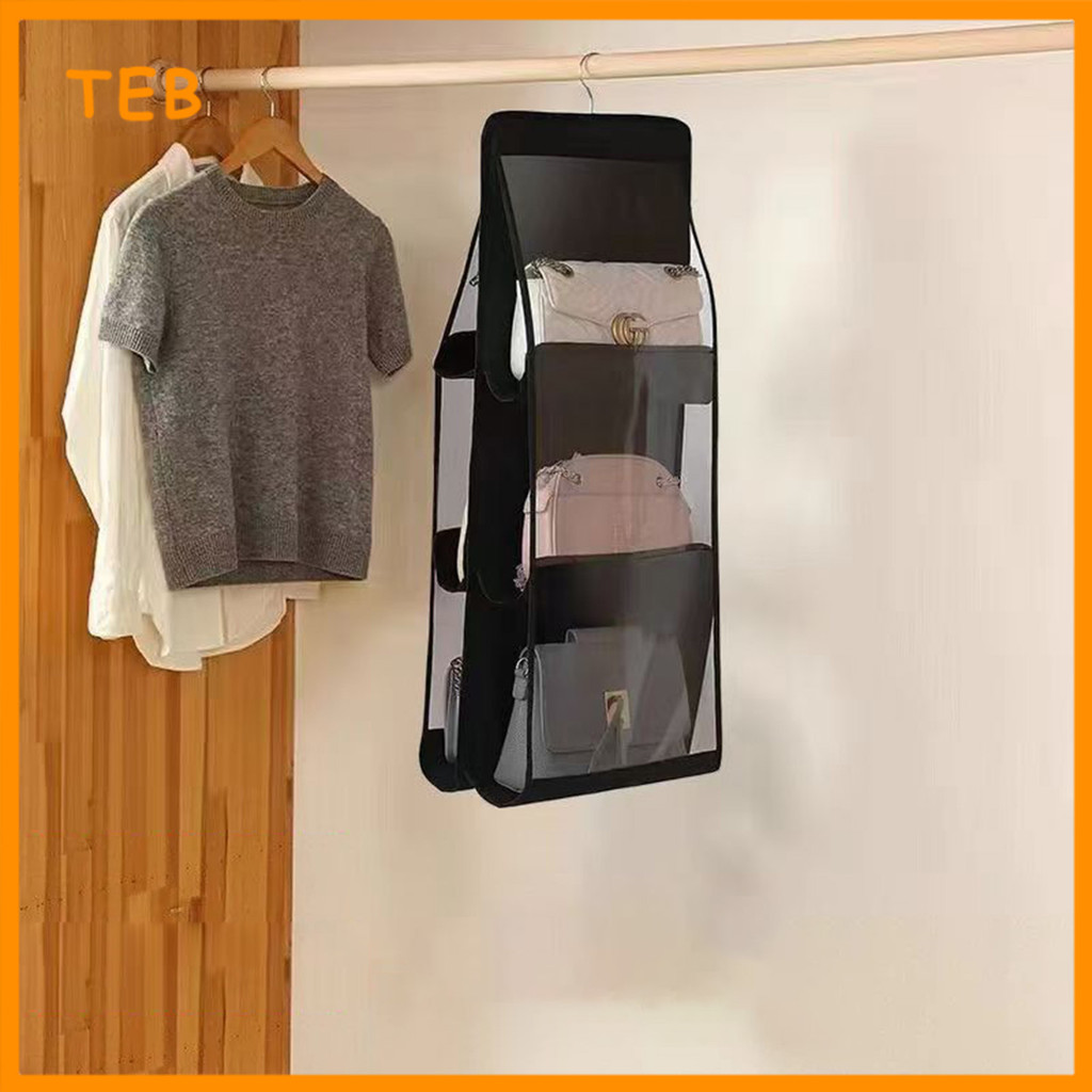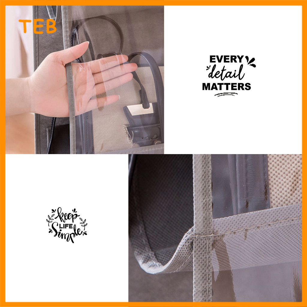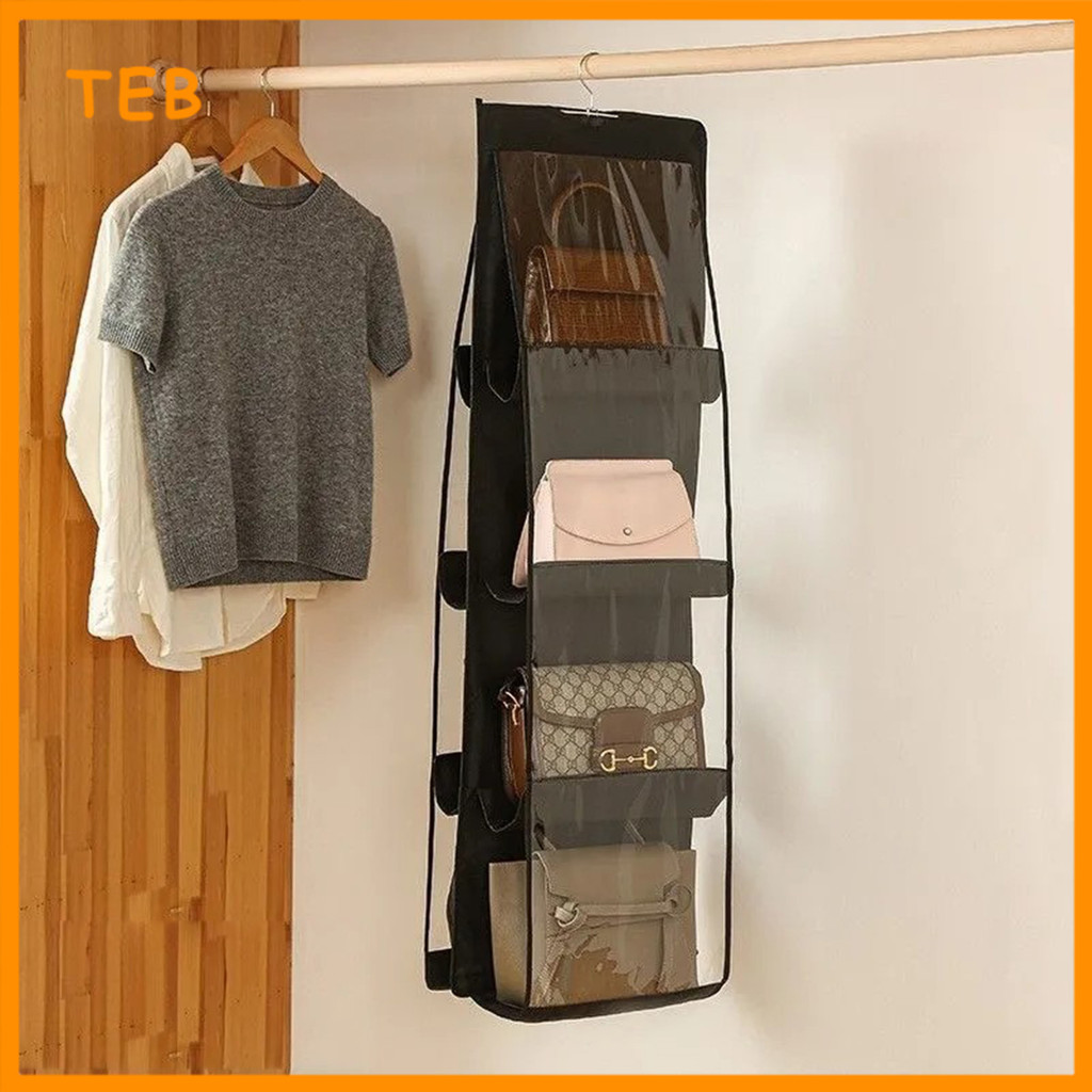 6/8 Poket Penyusun Beg Gantungan untuk Almari Kalis Habuk | 6/8 Pocket Hanging Handbag Organizer for Wardrobe Dustproof