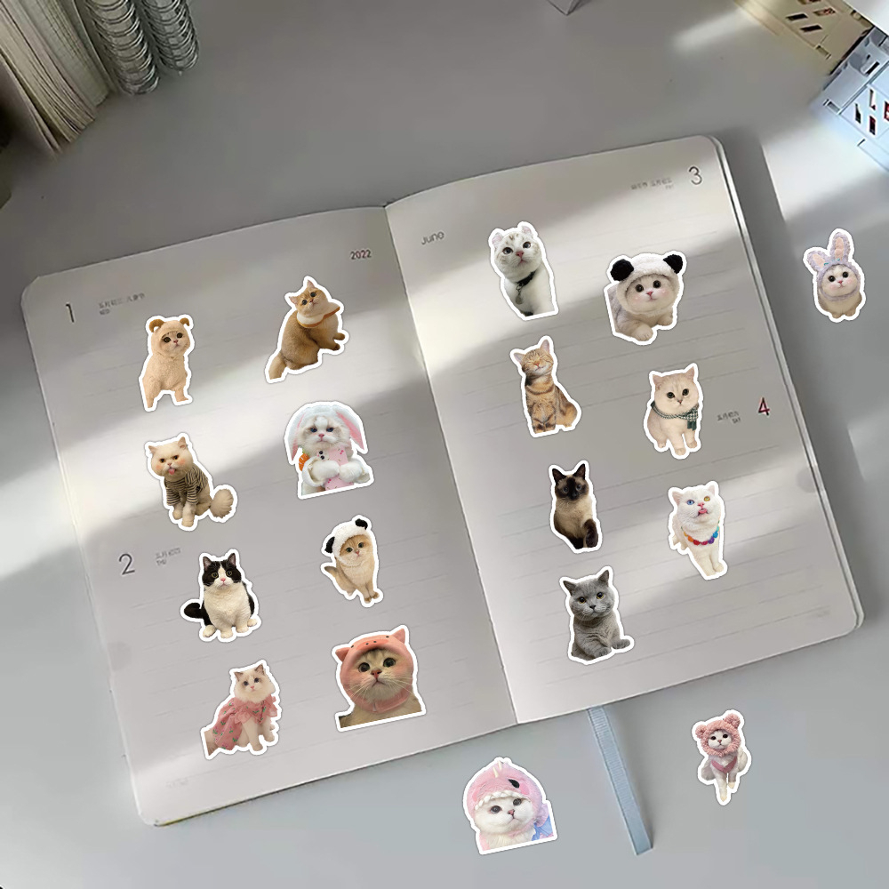 60PCS Cute Kittens Cats MEME Waterproof Stickers For Notebook Laptop Helmet Decal