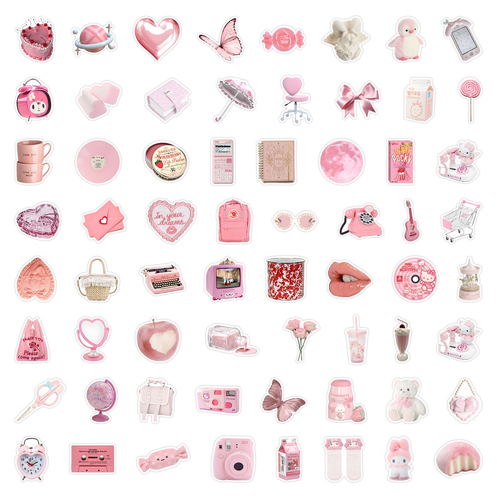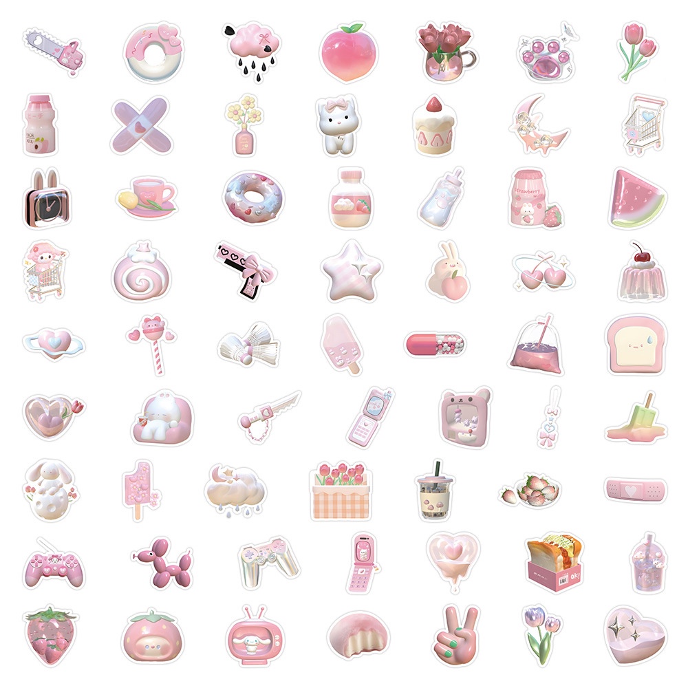63pcs INS Sweet Pink 3D Stickers Waterproof PVC Sticker for Cup Luggage Deco
