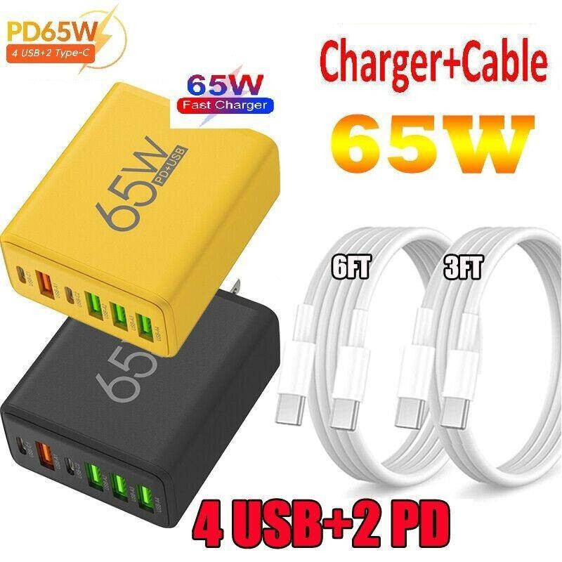 65w Fast Charger 6USB 2PD+4USB QC3.0 Fast Charging Adapter With Cable Support Quick Charge For Samsung