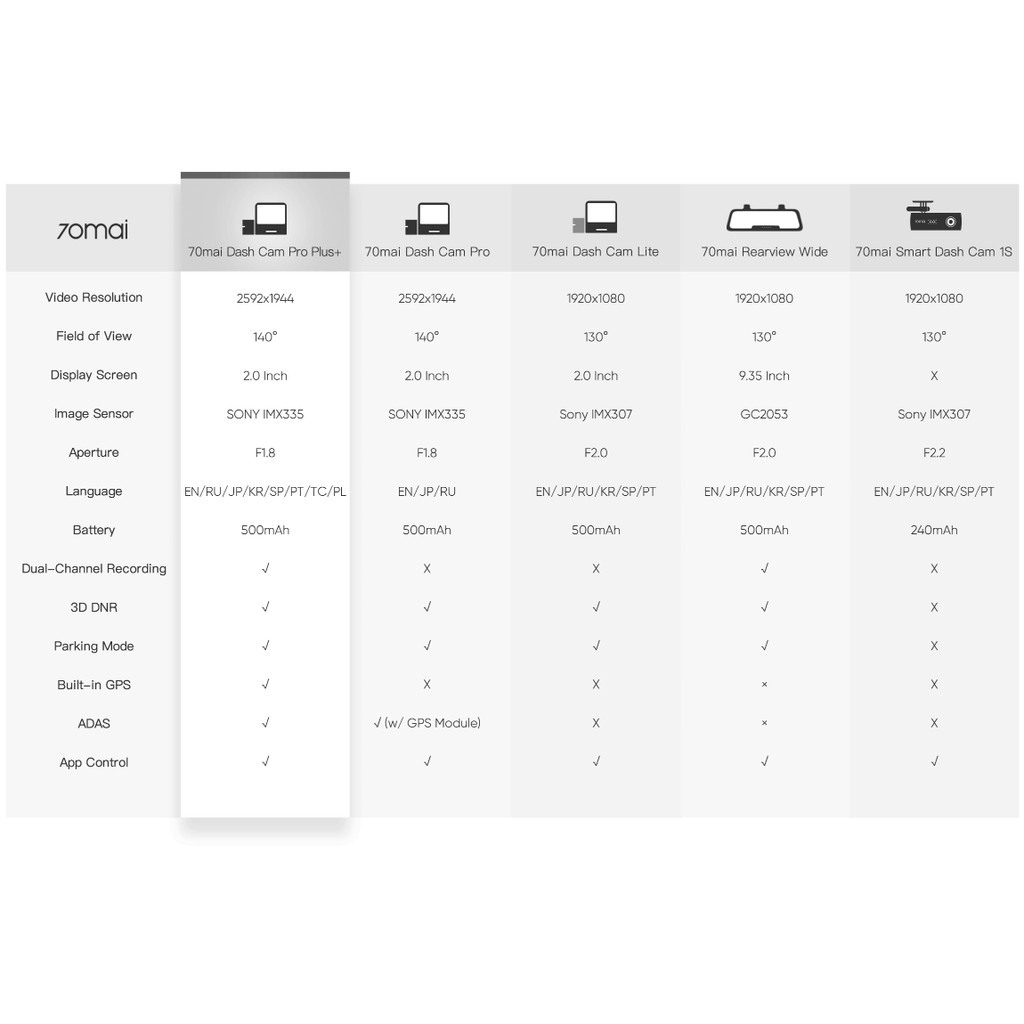 70mai A500S Pro Plus+ Dash Cam with 2 Inch Screen, Dual Channel Recording