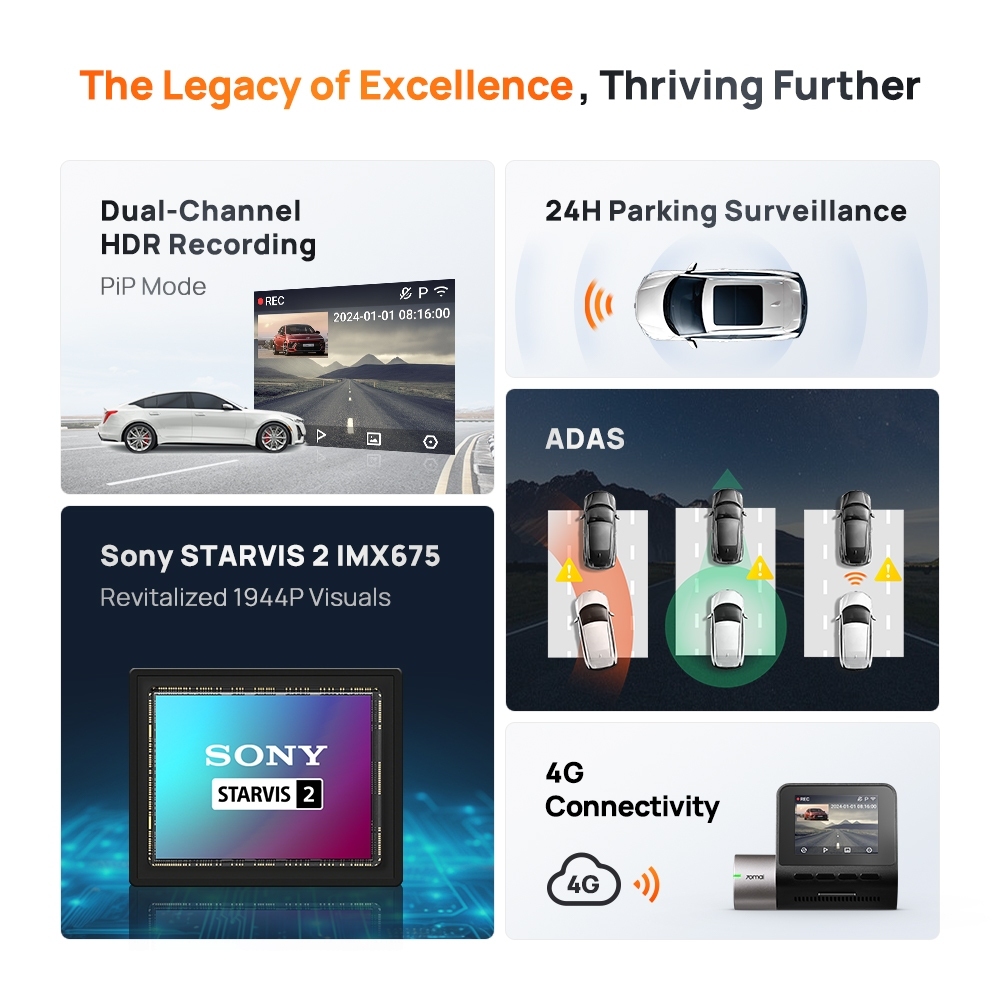 70mai A510 Dash Cam Dual Vision Car Recorder (Front + Rear) with GPS ADAS