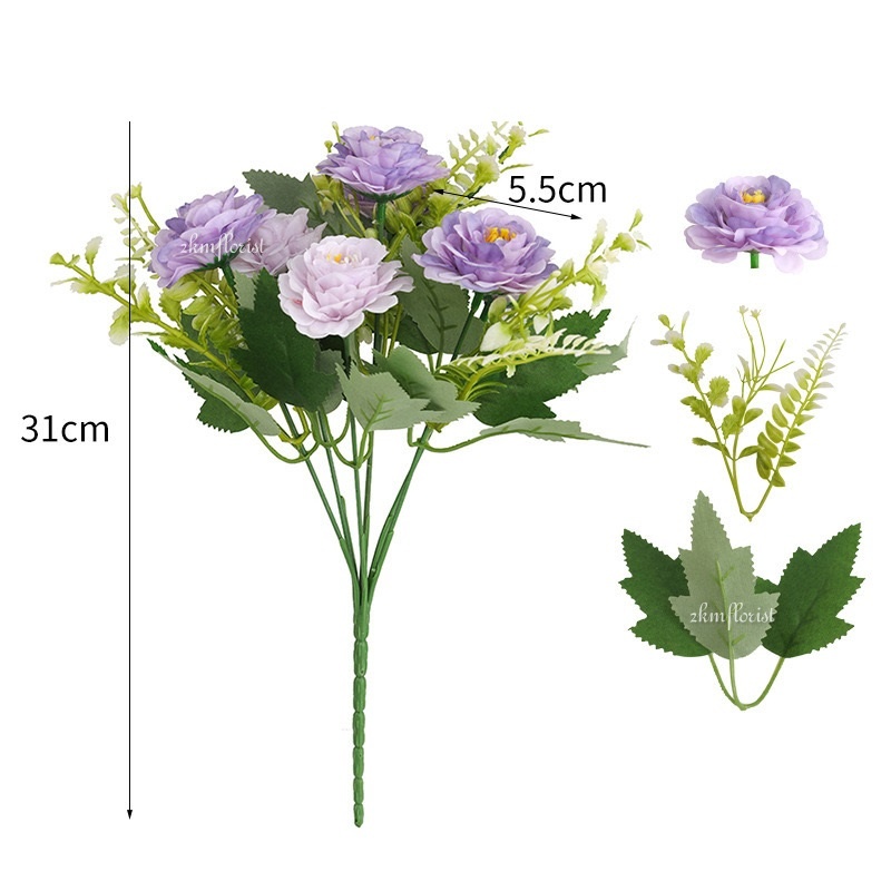 (8 FLOWERS) HIBISCUS PEONY Artificial Fake Flower Bouquet Living Room Home Decor Decoration Bunga Hiasan Meja Hantaran