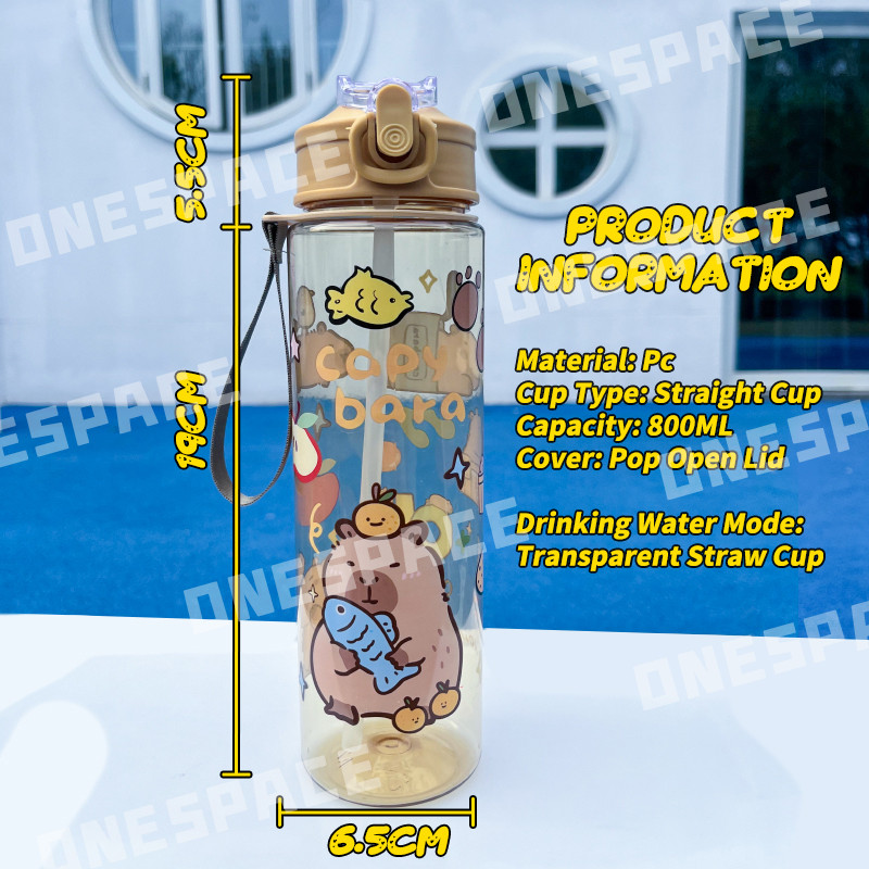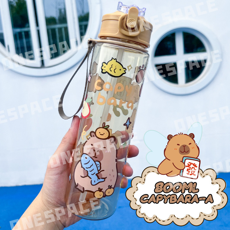 800ml Botol Air Capybara Kuromi Cinnamoroll Water Bottle Kids Straw Bpa Free Botol Water Bottle