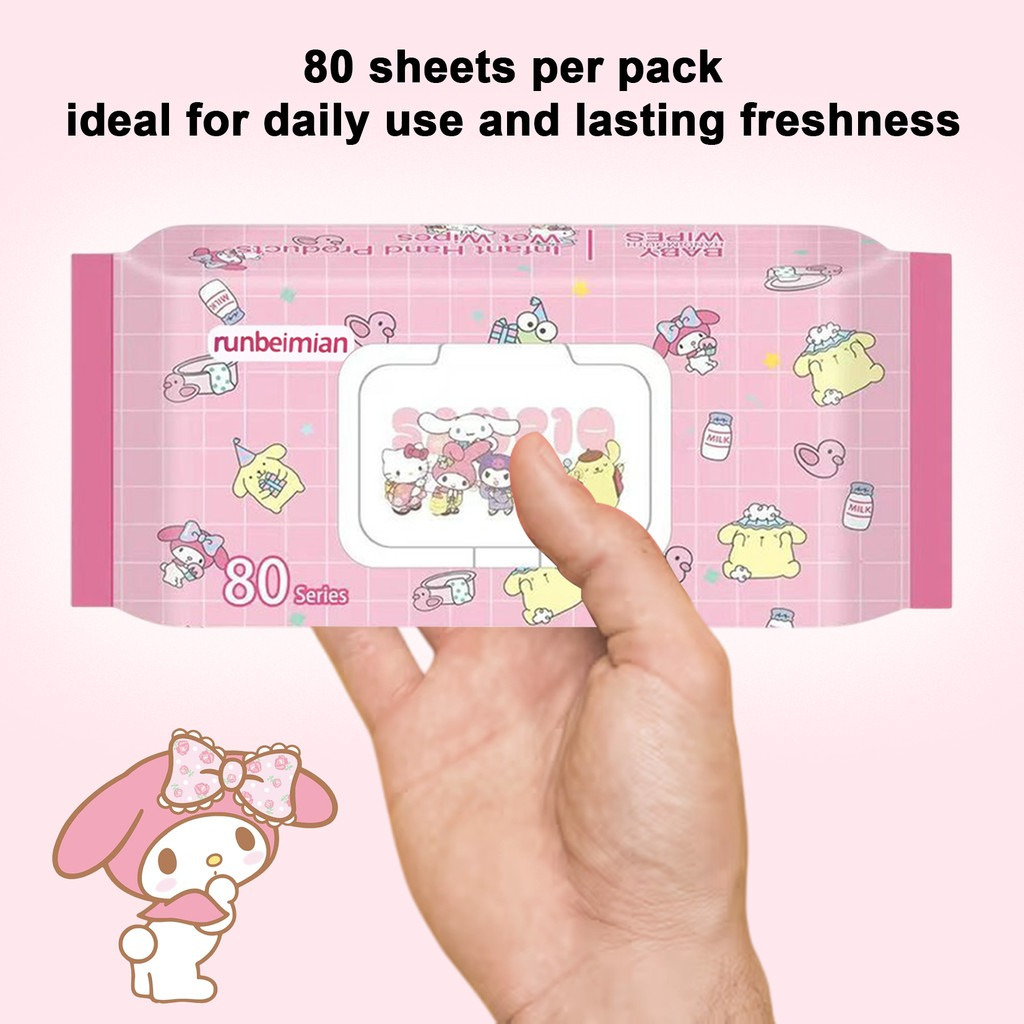 [80pcs] Tisu Basah Bayi Sanrio Disposable Baby Wet Wipes Fragrance & Alcohol Free Wet Tissue Baby Kids Cleaning Wipe BTP