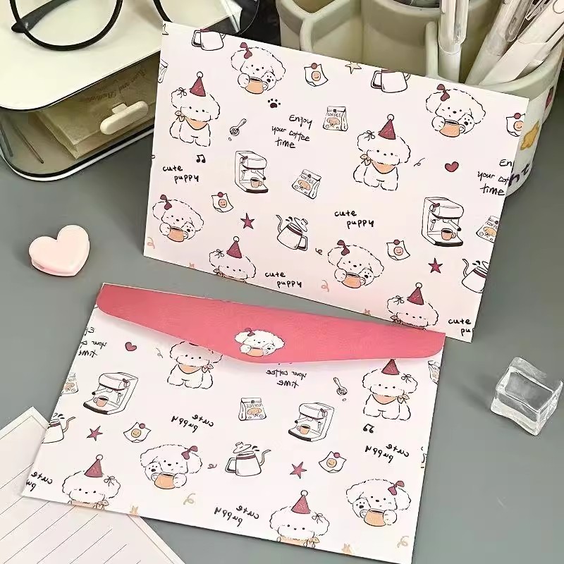 8pcs/set Coffee Cat Envelopes with Letter Pads DIY Love Letter Writing Gifts Wrap Holiday Wedding Invitation Cards Postcards Blessing Greeting Cards Cover