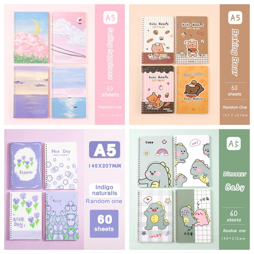 A5 Cute Coil Book Spiral Notebook A5 Coil Book SceneryStudent School Office Stationery(Random)1PC