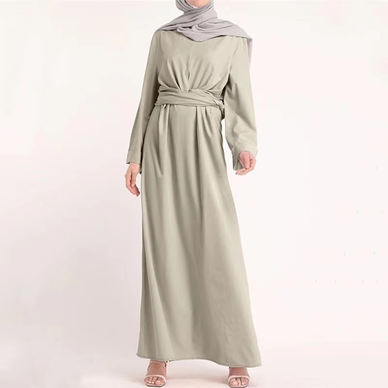 Abaya Muslim Elegant Dress Plain Women Fashion Jubah Long Sleeve Belted Dresses