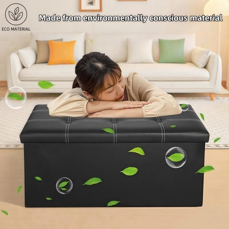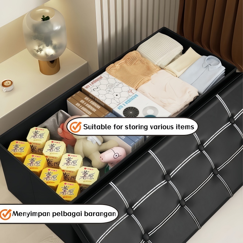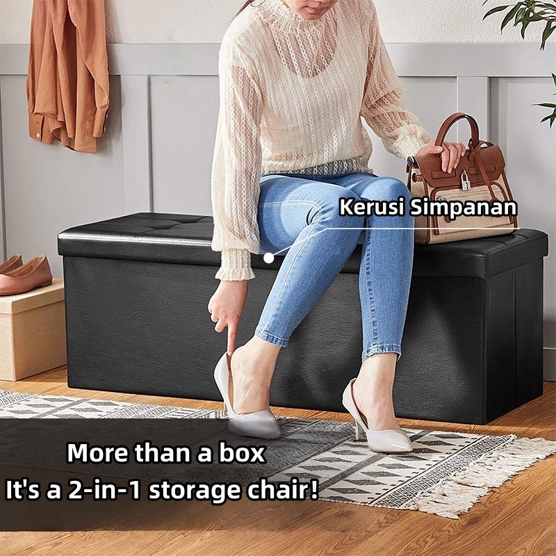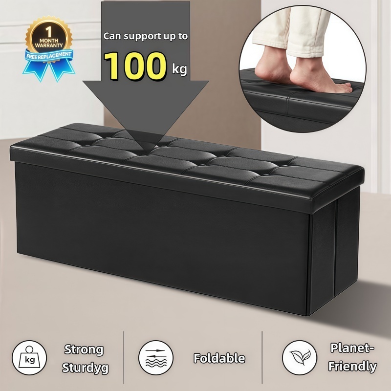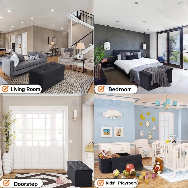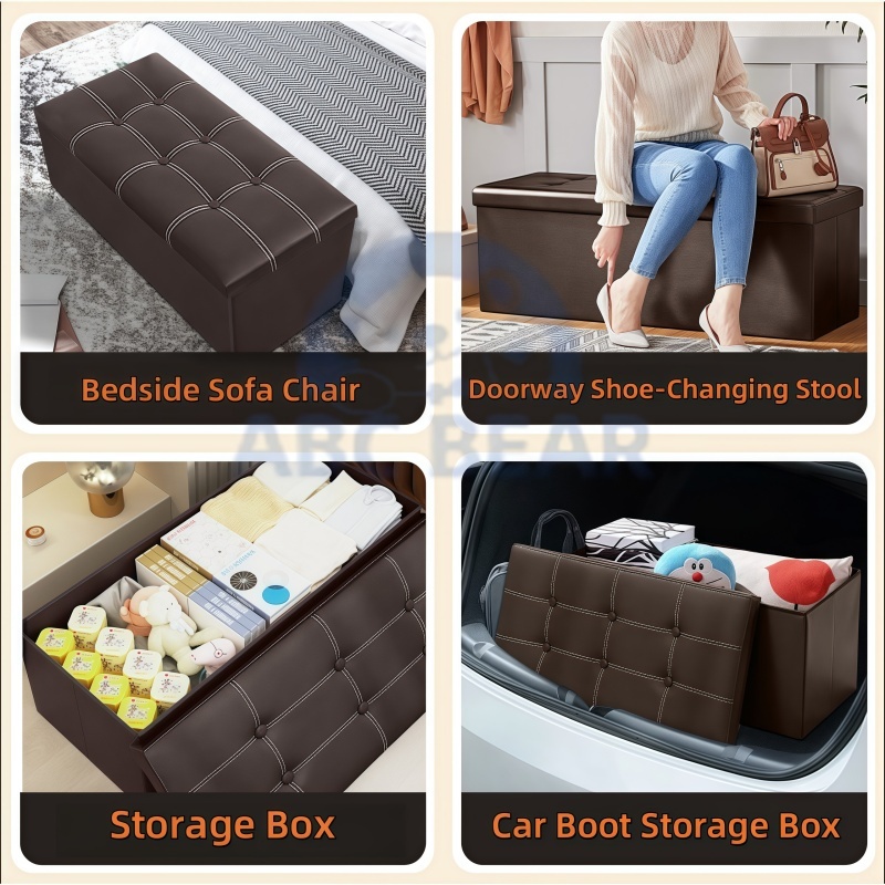 【ABCBEAR】160L 2-in-1 Foldable Sofa Storage Bench, Waterproof PU Leather Ottoman Organizer Stool Chair bench storage seat