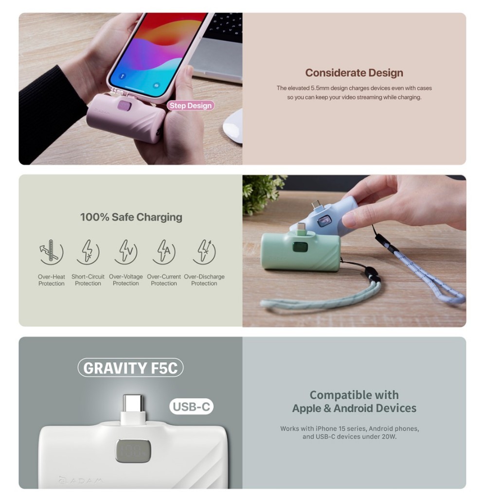 ADAM elements GRAVITY F5C | F5L USB-C Pocket Power Bank 5000mAh | L or Type-C