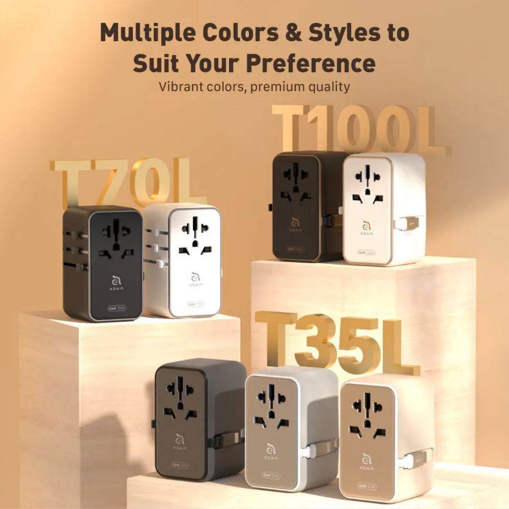 ADAM elements T35L / T70L / T100L Universal Travel Adapter with Built-In USB-C Cable