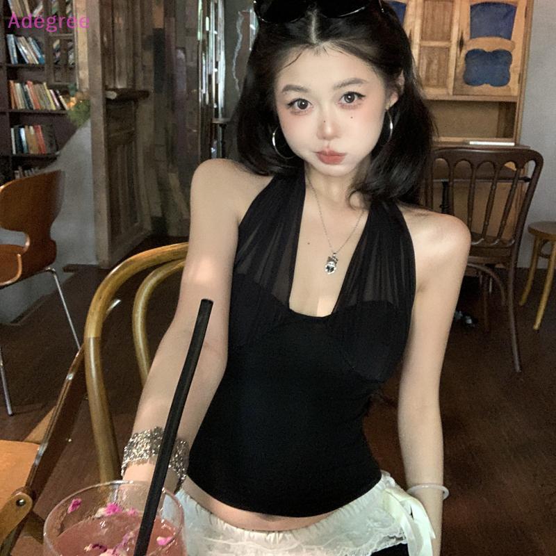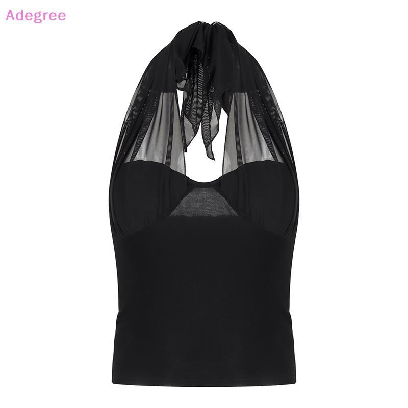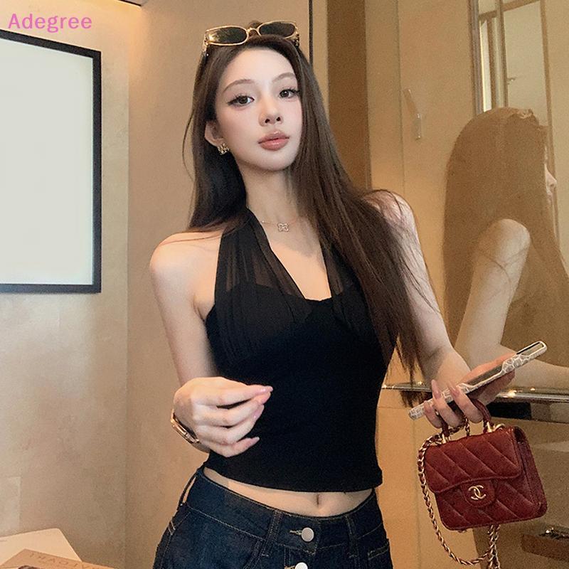 Adegree CK Mesh-Stitched Halter Neck Camisole for Women - Sexy Top with Built-in Padding