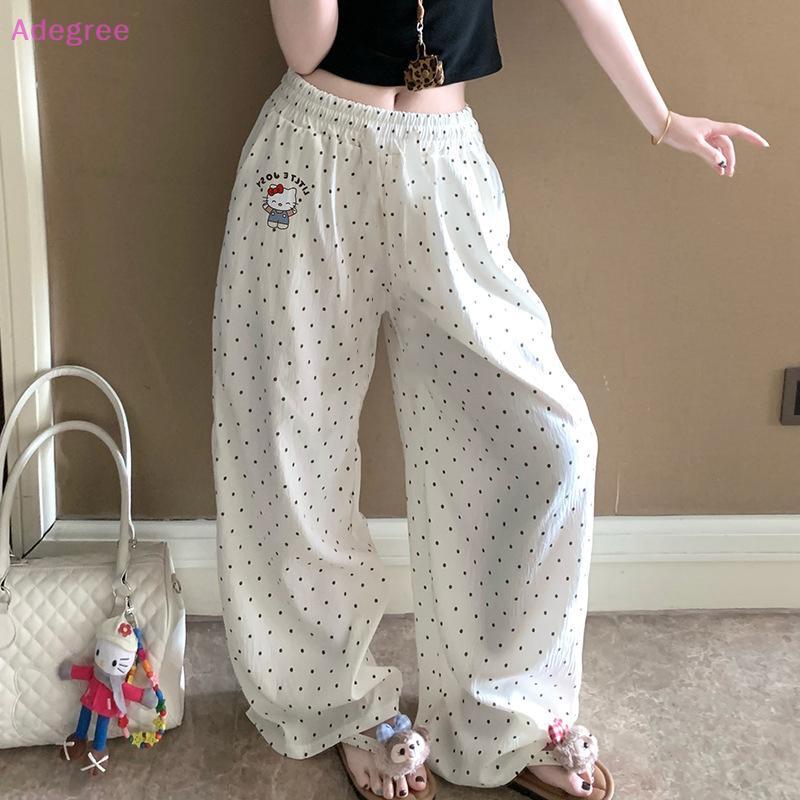 Adegree Fashion Casual Cute Cartoon Polka Dot High Waist Loose Pants For Women