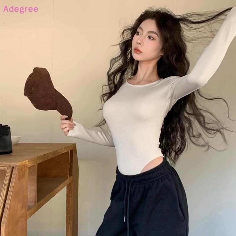 Adegree Women's Slim Fit Long Sleeve Bodysuit with Round Neck