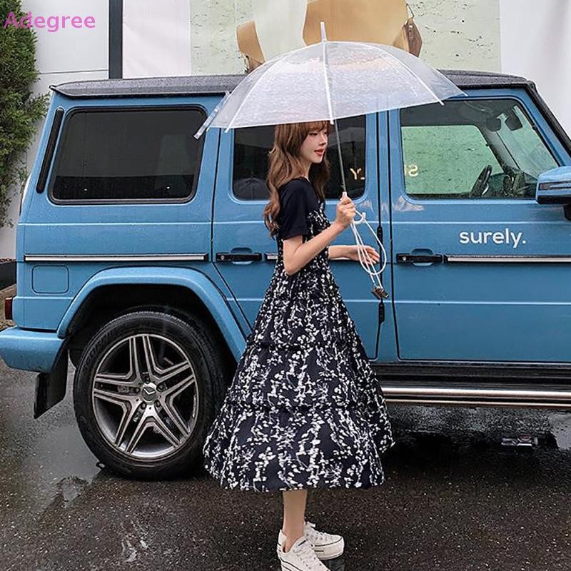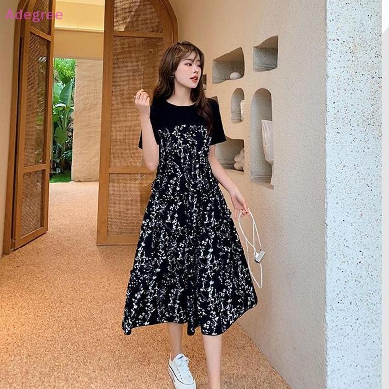 Adegree Women's Summer Dress Mid-Length Floral Printed Boho Casual Daily Chiffon Dress