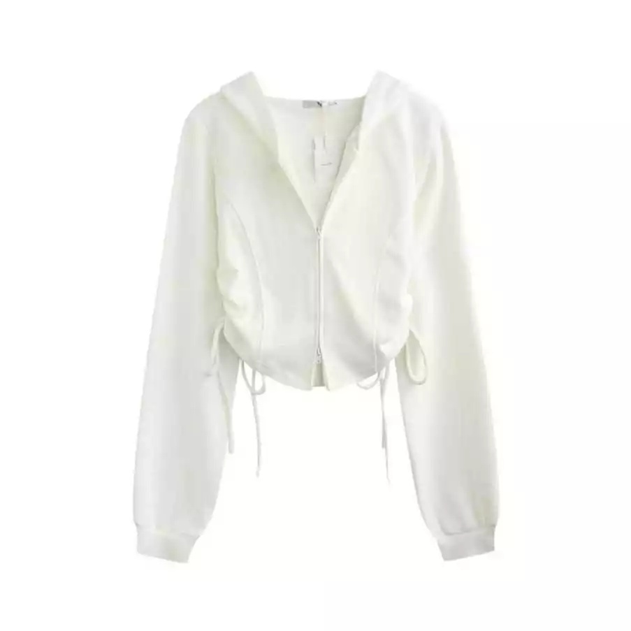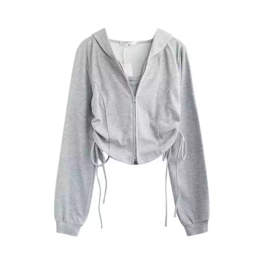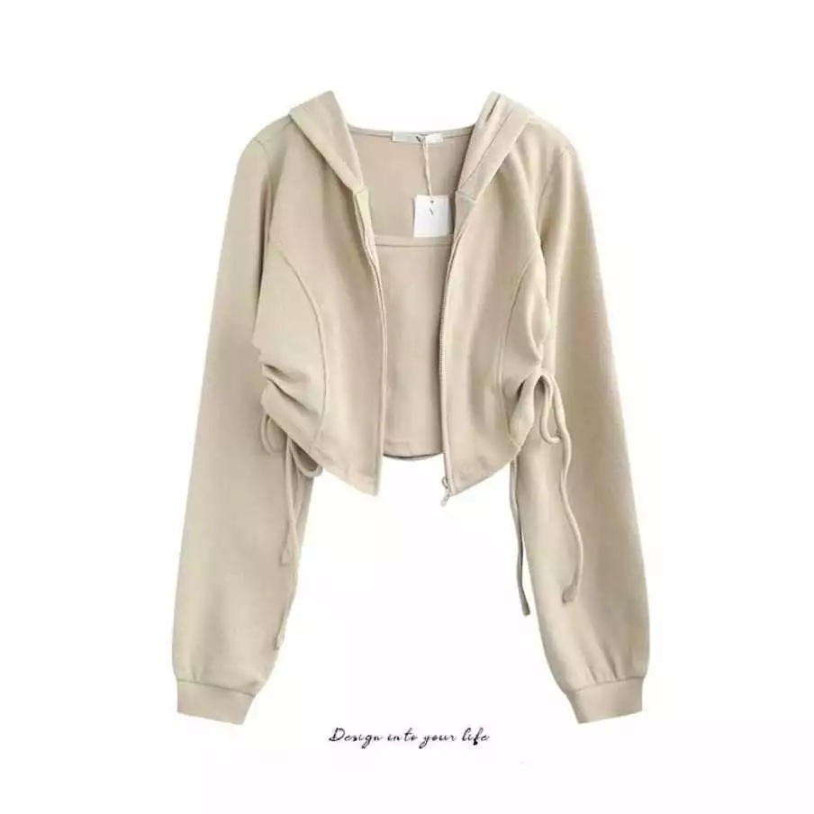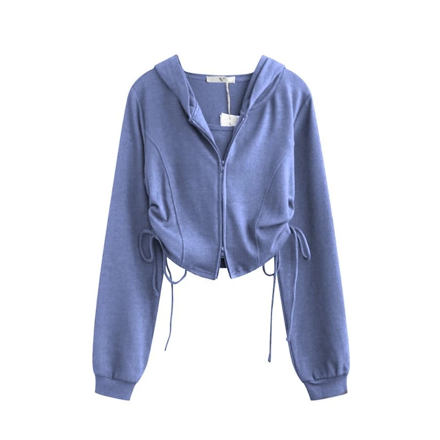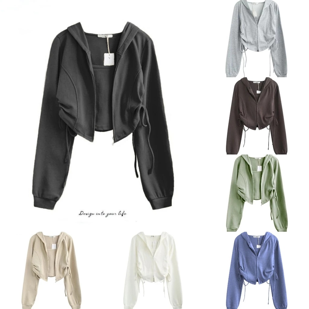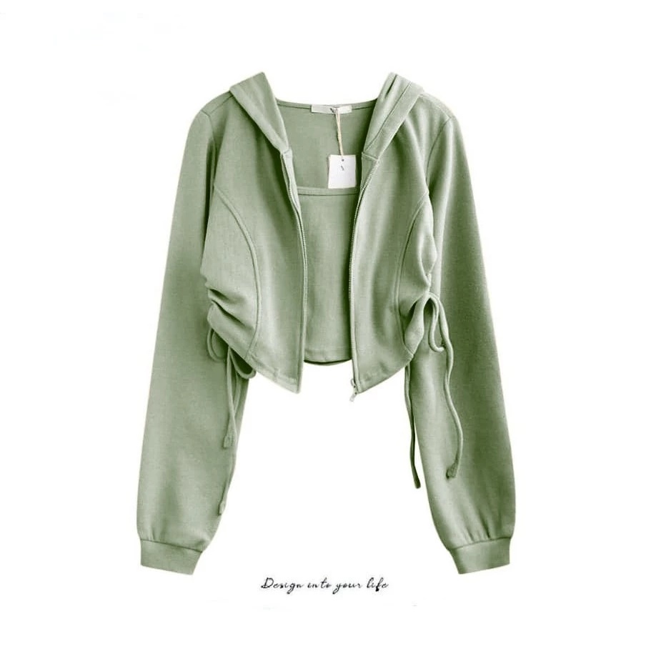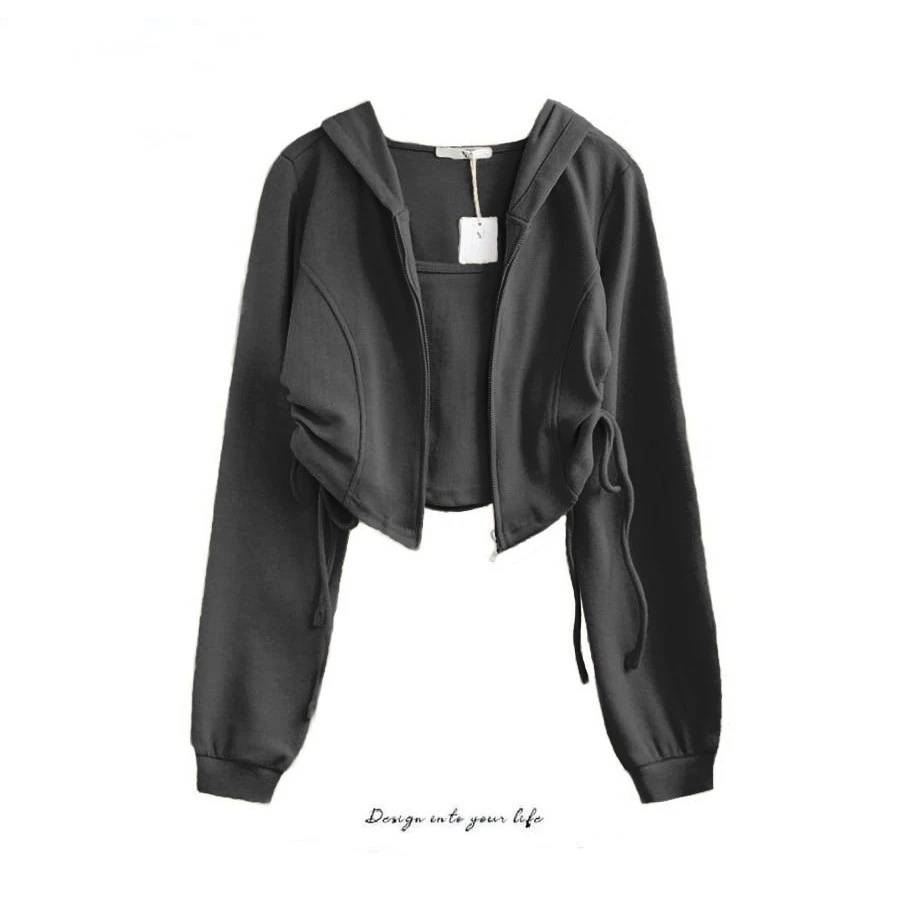 Adella Women's Crop Zipper Drawstring Jacket | Korean style casual top jacket for women