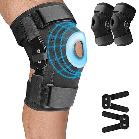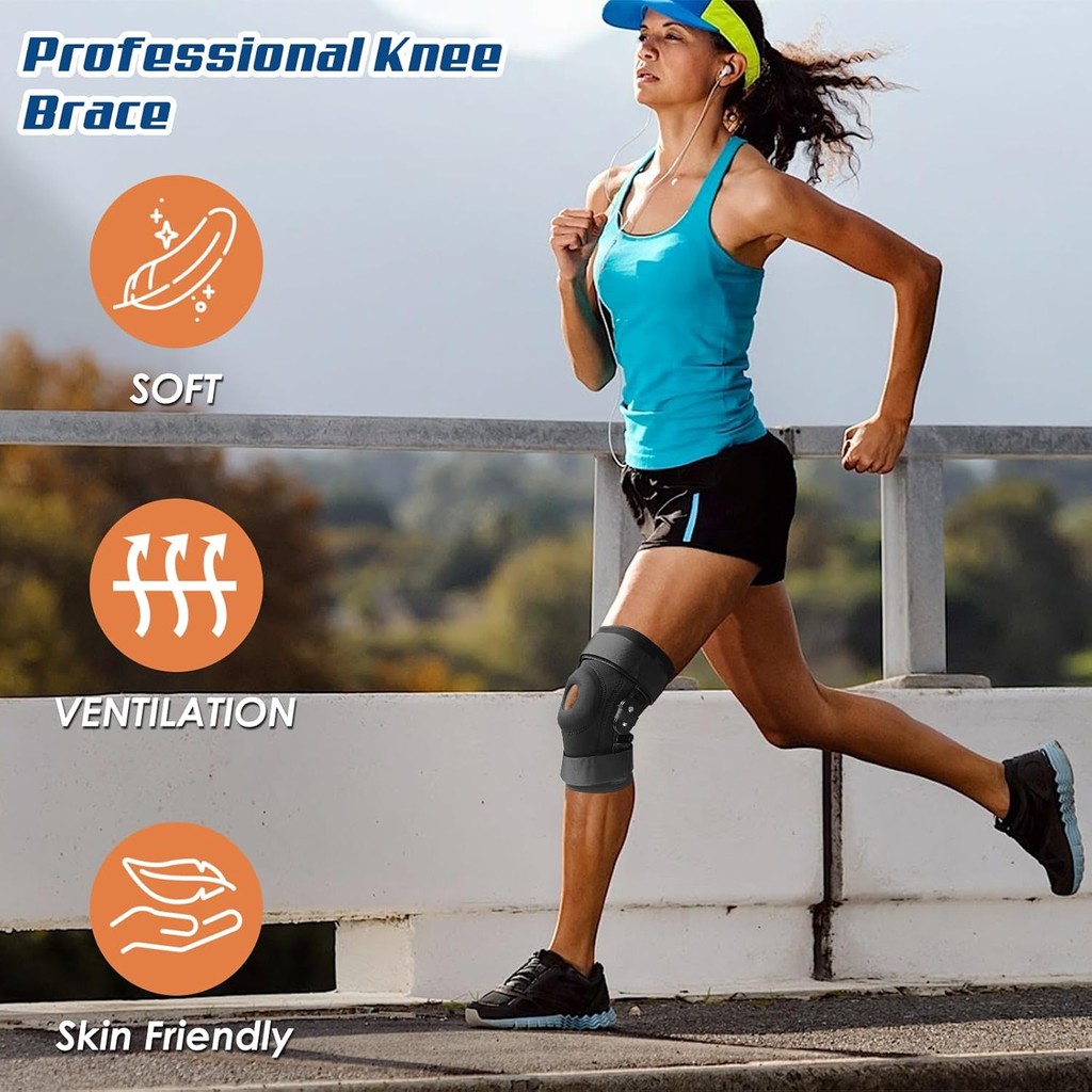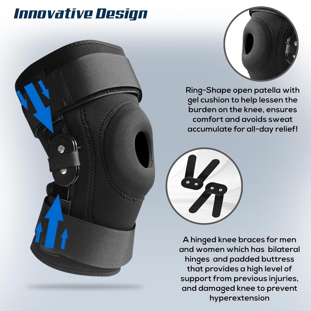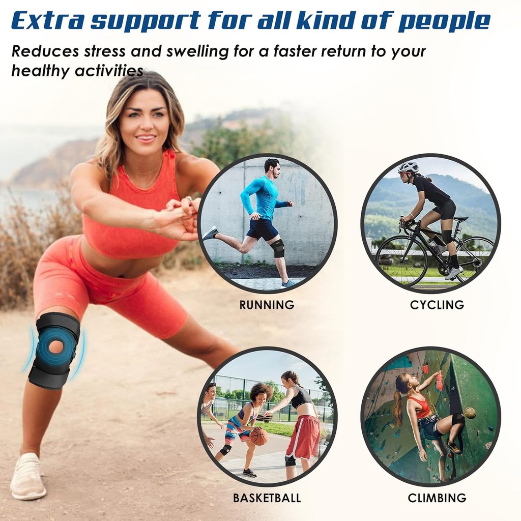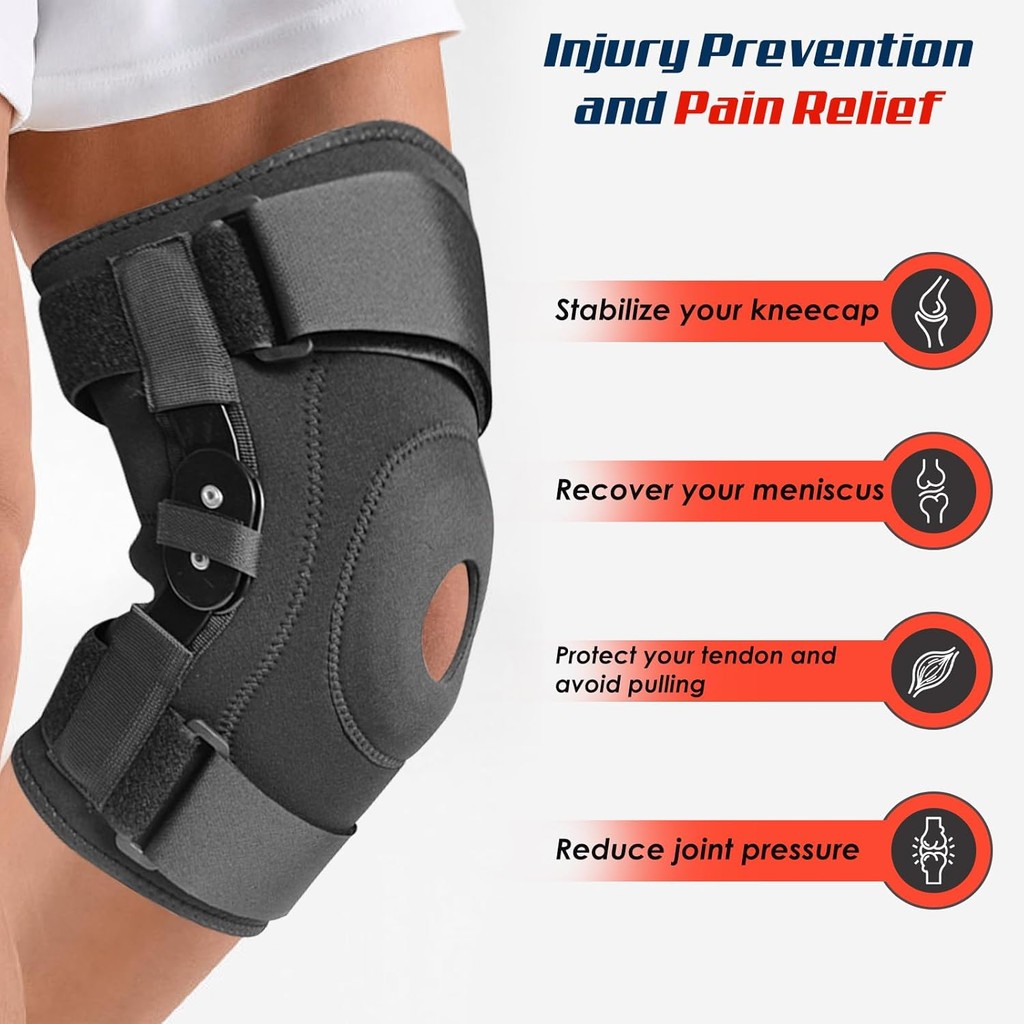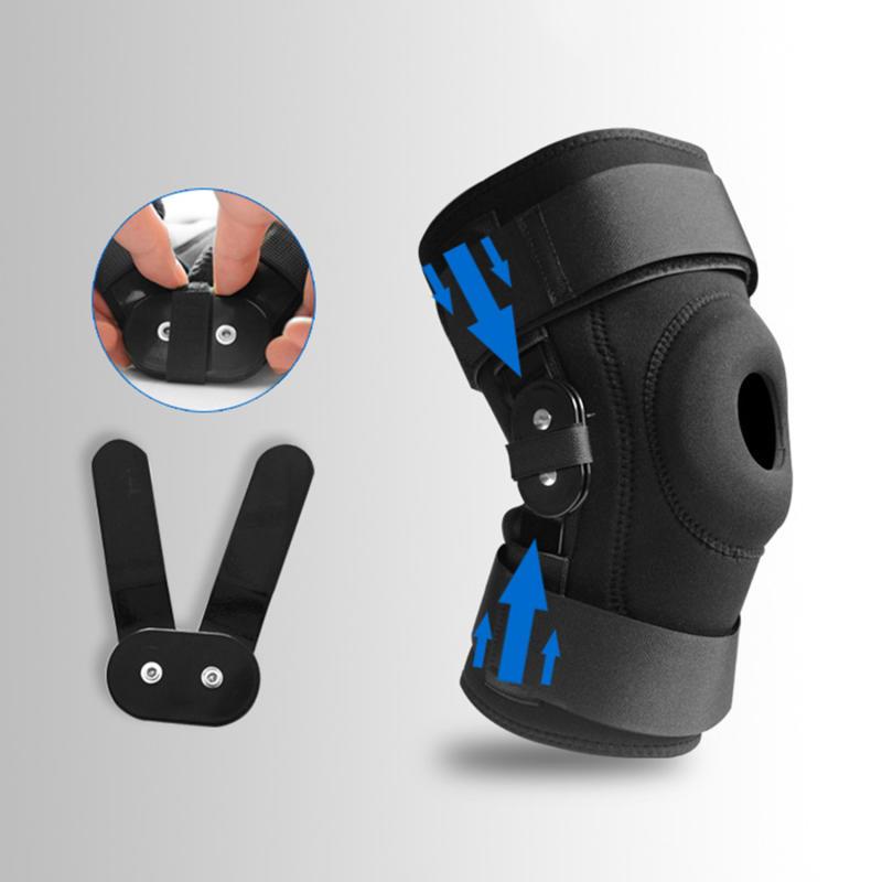 Adjustable knee brace, patella protector, alloy hinge motion stabilizer, knee adjustable hinge knee support, with detachable side stabilizer for strong stability
