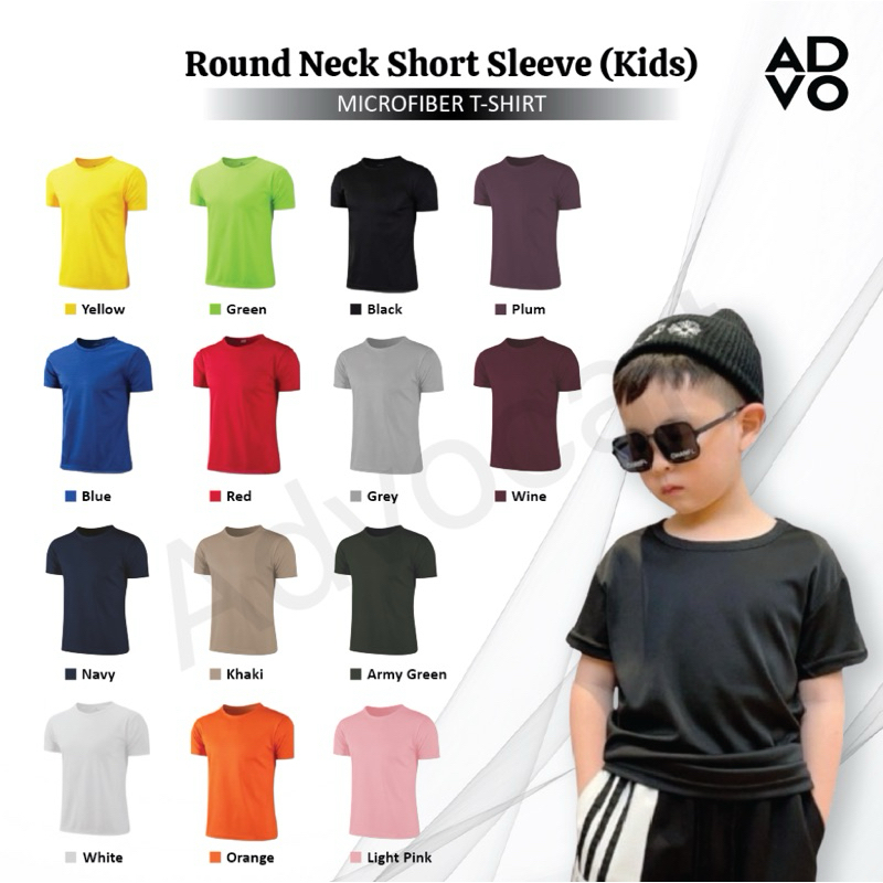ADVO [New Series] Kids Microfiber T-shirt Round Neck Baju T shirt Kid Tshirt Children Quick Dry Baju Kanak