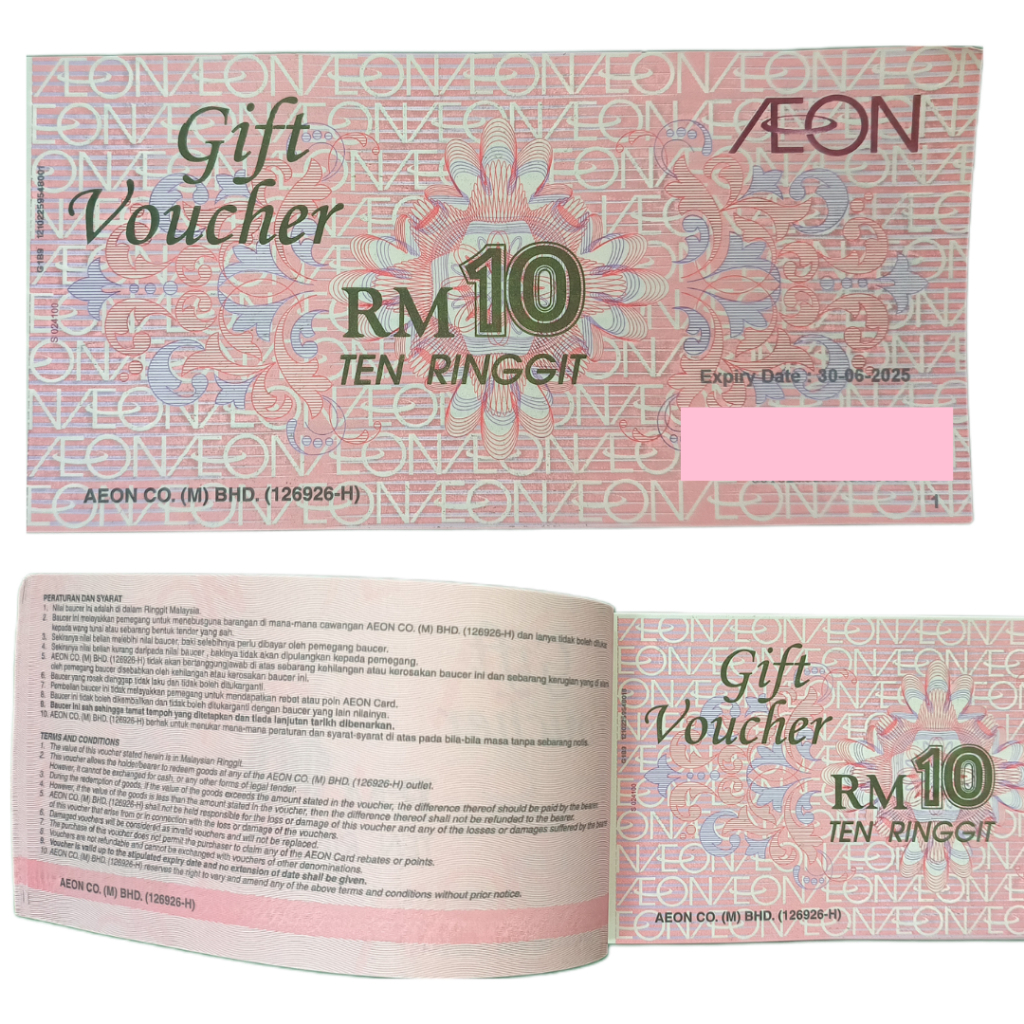 AEON RM 10 GIFT VOUCHER 30/06/2026 BAUCAR JUSCO RM10 TEN RINGGIT SEPULUH EXPIRY DATE 30 JUNE 2026